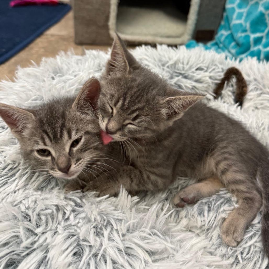 Meet Sylvie, she gets her name from her gorgeous silver stripes and is bonded to her sister Misty (KRLA-A-85466). Sylvie is an energetic yet polite little lady who adores lounging in cool spots like beside (or right on top!) the Dyson fan. She is also a fitness queen who loves to chase her tail and work out on the cat wheel. She doesn’t just settle for silver. With her zoomies, she earns gold on the wheel. Quick on her paws, Sylvie will also leap onto your lap at any opportunity. Whether you’re working at your desk or eating dinner, she’s always ready to join you. Hand her a treat and she might surprise you with her adorable dinosaur stance, standing tall and proud to impress her human fans. When she’s not pretending to be prehistoric, Sylvie clocks in at the biscuit factory alongside Misty, kneading away with love. She’s the perfect quiet companion, always nearby to keep you company with her soft presence and sweet heart. If you’re looking for a kitten with charm, grace, and a little goofiness, Sylvie is ready to race into your life with Misty right beside her. Please contact the foster at ashleydong97@gmail.com