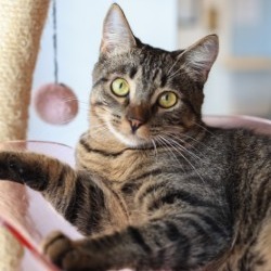 This adorable brown tabby teen is as adventurous as he is cute! Honda earned his name after being discovered way up a tree next to a Honda dealership — talk about a dramatic entrance into rescue life! Luckily, his tree-climbing days are behind him, and he’s now focused on what really matters: playtime, cuddles, and bonding with his feline friends. Honda is sweet, curious, and full of energy. He loves chasing toys, climbing cat trees (safely now!), and snuggling when it’s time to wind down. Ready to welcome a little adventure (and a lot of love) into your life? Honda is waiting to meet you! Please contact the foster at adopt@kittenrescue.org