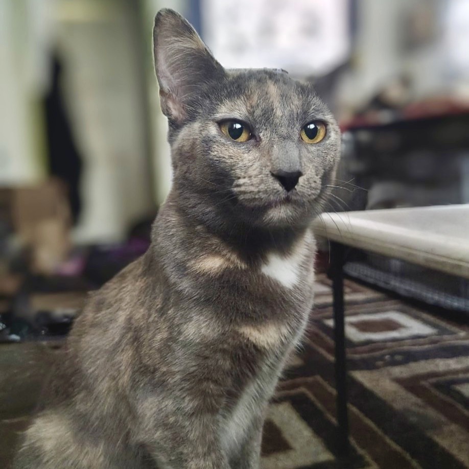 Luna and her siblings were rescued as kittens and have grown into a happy, social, and loving little crew. Luna, Stella (KRLA-A-86149), and Celeste (KRLA-A-86148) are beautiful diluted tortie sisters, each with their own unique coloring and personality, and Saturn (KRLA-A-86232) is their handsome tabby brother and Cosmo (KRLA-A-86150) their sleek black panther brother. These siblings are everything you could hope for - playful, affectionate, and full of personality. They love to chase toys, wrestle with each other, and explore their surroundings. When they’re not busy playing, they enjoy cuddling up together or curling up on their humans for a cozy nap. Because they were raised together and are so well-socialized, they thrive on feline companionship. They take comfort in having a buddy to play with, groom, and snuggle, and for that reason, they must be adopted into a home with an existing playful, friendly cat or they can be adopted with one of their siblings. These siblings will bring so much joy, energy, and love into the right home. Whether you’re looking to adopt a pair or add a playful companion to your current kitty, they are sure to make a joyful addition to your family. If you’re ready to welcome playful, loving companionship into your home, schedule a meet and greet and come meet these sweet siblings! Please contact the foster at gerardoocampotnr@gmail.com