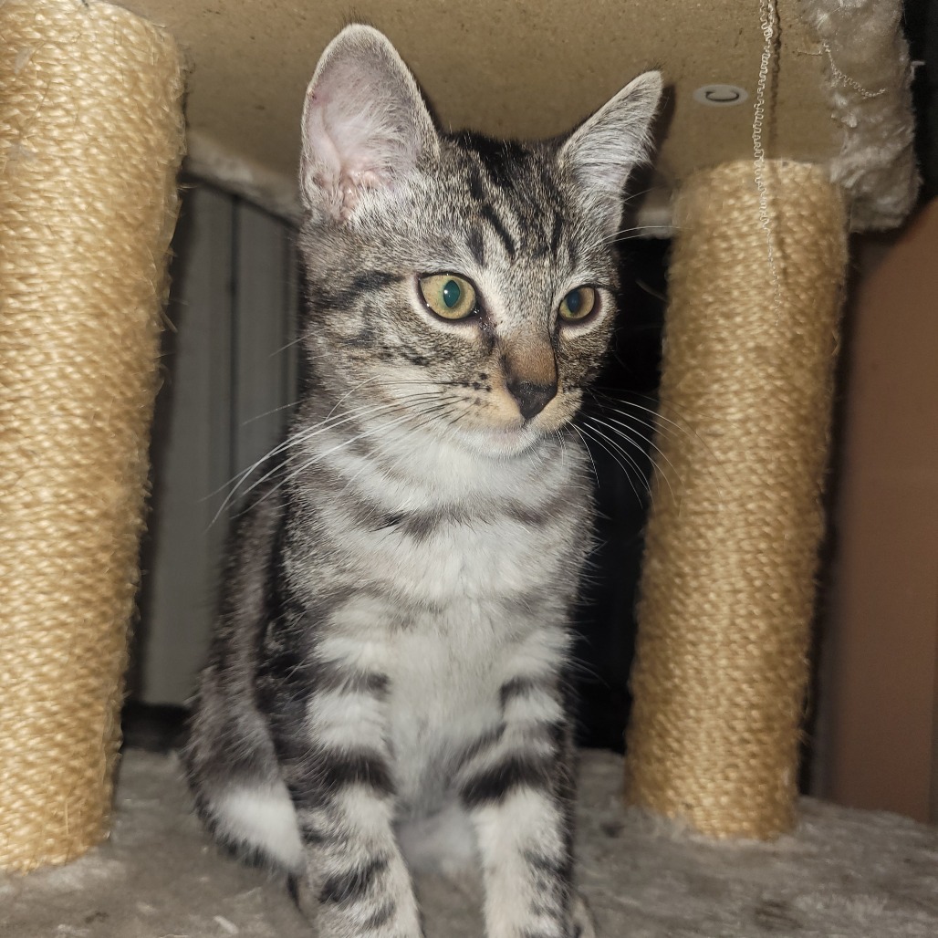 Robinson “Robby” is aiming to be the leading female action star in Hollywood! Robby already has set experience as her and her siblings were born to their mom Sinatra and found on the set of Paradise! Robby is definitely a tom-girl and has had to learn to be tough with three brothers! Robby definitely loves all activities with her brothers, including climbing, wrestling, running. Robby also enjoys a chill calm down session and loves to sleep in your lap. As Robinson is still a kitten, she has lots of energy to expend and will need to be adopted with another kitten. Be advised your home will be the object of all her favorite activities. Robby would love to be your favorite action star and play with you, and would love if one of her siblings can join the fun too! Bonded Siblings: Cal (KRLA-A-86194), Billy Pace (KRLA-A-86193), and Xavier (KRLA-A-86193) Robinson is currently living with her siblings, mother, in her foster’s home with a small dog and another cat. Foster can be contacted at mabenish@yahoo.com