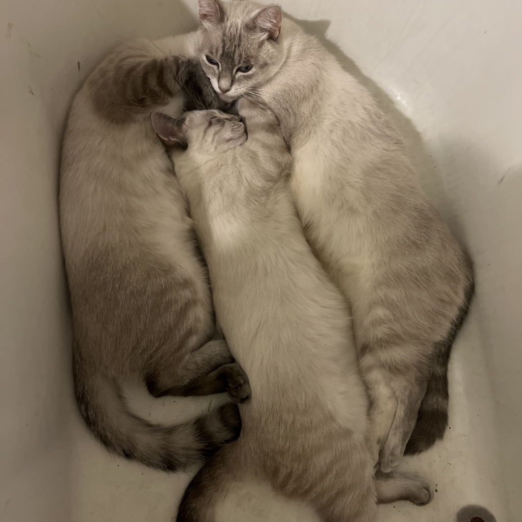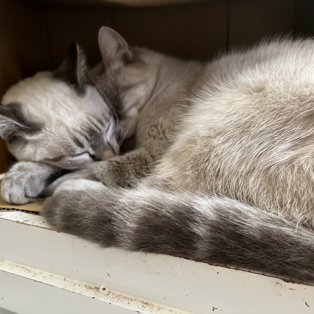 Paulie was rescued from the streets with the rest of his siblings and their beautiful, young Mama. He’s healthy and happy and now ready for a furever home! Paulie is a beautiful Lynx Point Siamese with a beautiful personality to match. He is bonded with his almost identical twin brother Frankie KRLA-A-86243 and they must be adopted together. Paulie and Frankie are an incredible combination of all the things we love so much about kitties. They can play wrestle and chase with each other for hours and they snuggle and groom each other too. They also really love their humans. They are super sweet, affectionate kitties, it would be hard to find a better pair of fur babies! Paulie is super snuggly and affectionate, he purrs the moment he sees me or hears my voice. He loves to jump in my lap and get lots of affection! He is very demanding of affection so his human must have a lot of love to give!! They will brighten any home with lots of love and their silly kitty antics. Please contact the foster at annmariehair@gmail.com