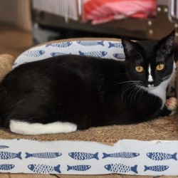 Carly is a charming tuxedo kitten with a heart as big as her bright eyes! Found as a stray and brought to us by a kind-hearted Good Samaritan, Carly quickly showed us just how sweet, spunky, and social she is. She’s playful, affectionate, and loves making new friends, especially her best buddy Honda, KRLA-A-86063. These two are often found snuggled up together after a good round of kitten zoomies. Carly would love to be adopted with Honda so they can continue their adorable friendship in a forever home, or she could go home with another of her new kitten friends if you don’t already have a young kitten at home. Carly is the perfect mix of cuddles and curiosity, and she’s ready to bring endless joy to a lucky family! Please contact the foster at adopt@kittenrescue.org