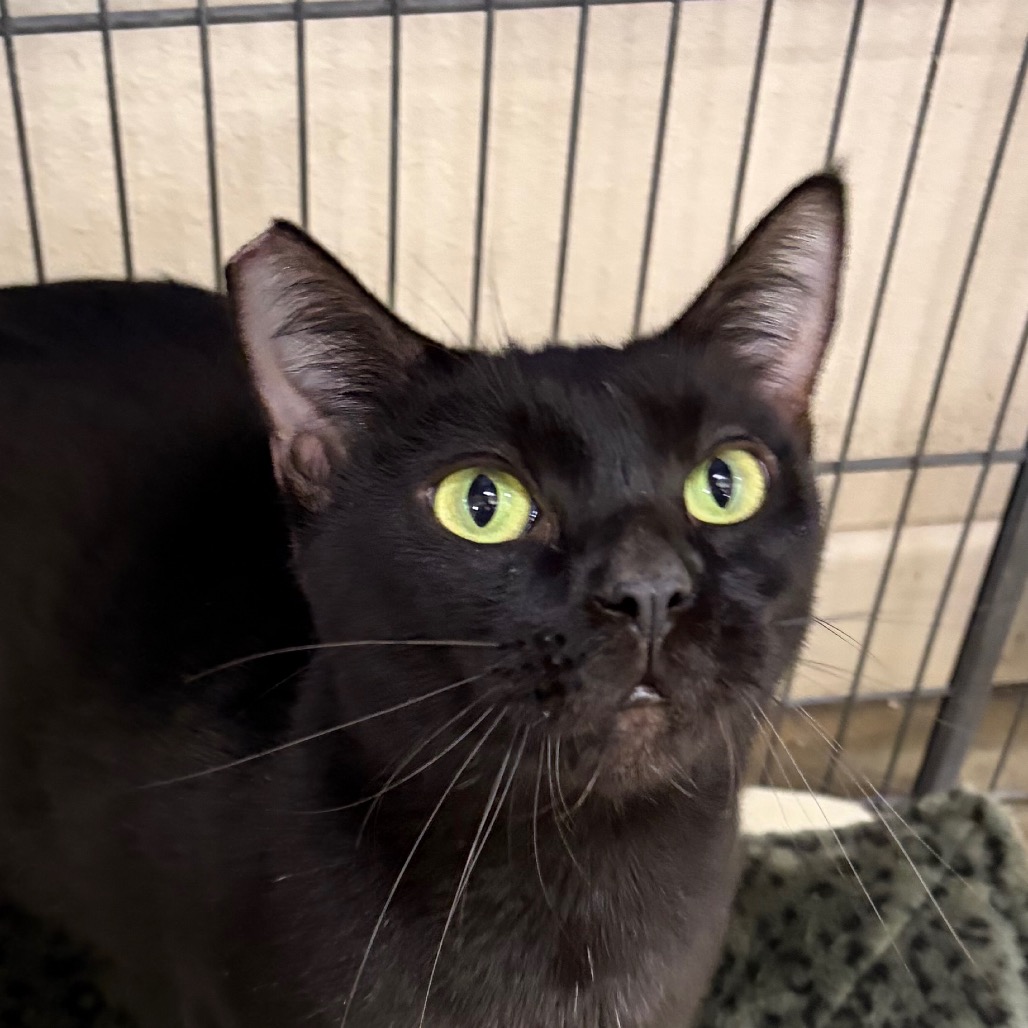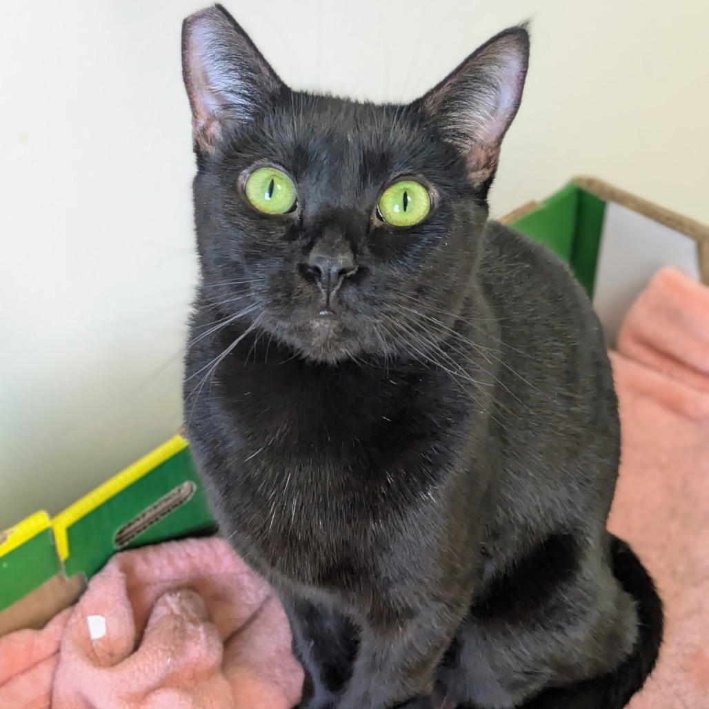 With her stunning green eyes and beautiful, dense black fur, Elvira is a knockout! A true mini-panther, all set to grace your home. Elvira is a bit shy and can be tentative at first when meeting a new person, but has learned quickly that pets and scritches are her thing! She will actually follow you and bat your hand to keep your attention on her! For more information, contact: orlyahar@gmail.com