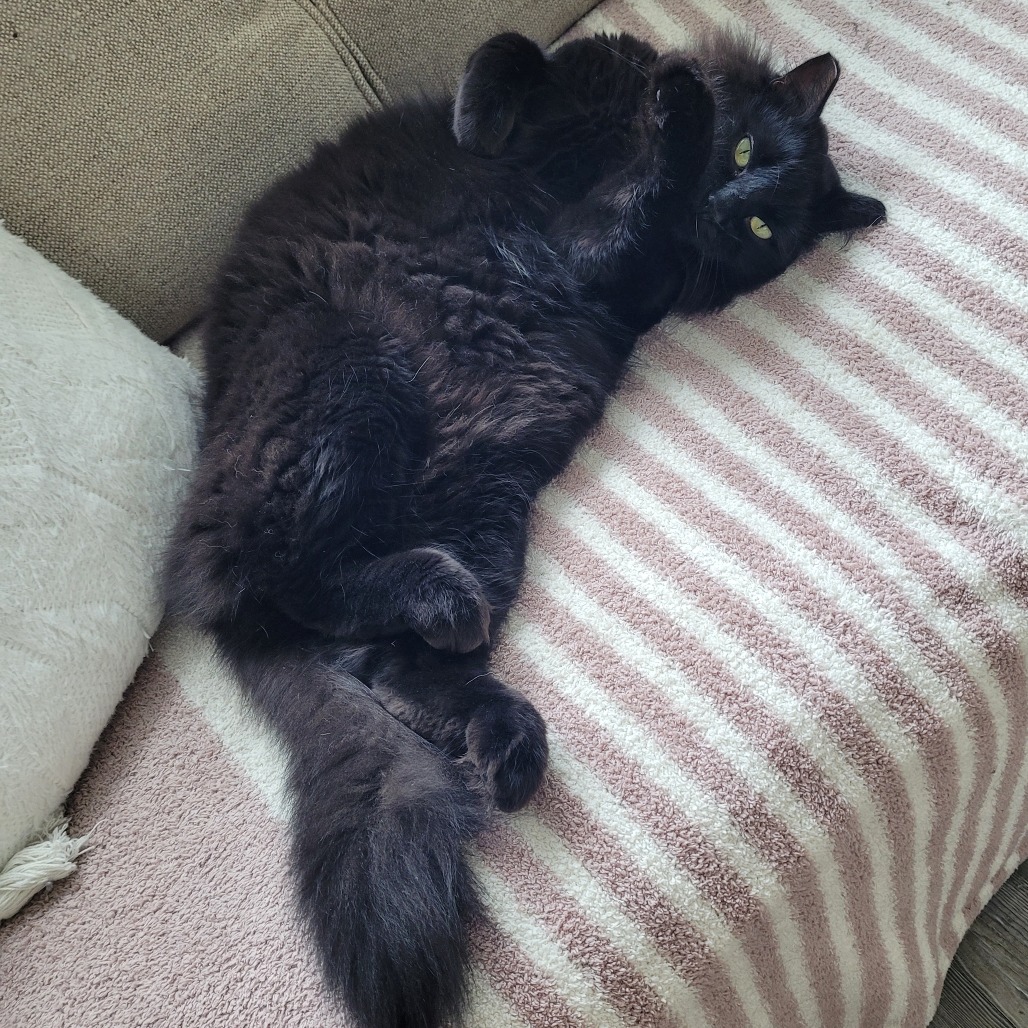 If you’re in the market for a little shadow who will follow you around your home and give you lots of affectionate headbutts, Fabian’s your guy! This posh gentleman literally invited himself into his foster mom’s apartment—clearly he has always been meant for the good life indoors. Fabian’s hobbies include long naps, playing with wand toys, spying on the neighbors via his favorite windowsill perch, and attempting to will every human he meets into sharing their food with him (so far it hasn’t worked, but he’s not about to give up!). He currently lives with a dog and another cat, and is getting along great with both; he would be happiest in a home with at least one other cat for him to play with. We haven’t seen him around children, but he would probably do better with older kids. Please contact the foster at jmahoney320@gmail.com.