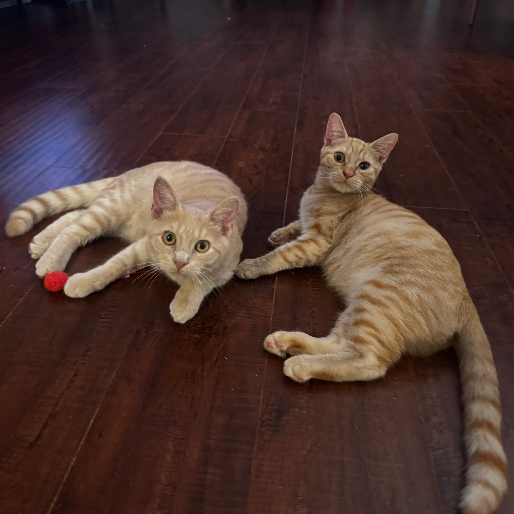 Tortilla is a sweet fun kitty who is just a happy. He spends his days playing with all sorts of toys or wrestling with his BFF and brother – Dorito. The two of them spend hours batting around balls, exploring cabinets if they are open, or snuggling up to humans that will have them. They both love to play cat games on a tablet or chase things on a TV. Tortilla will snuggle up to you on the sofa and just purr and purr. He loves getting petted and with his soft fur you just can’t help yourself. He is quite social and will hang out with guests when they come over. Tortilla is bonded to his brother, Dorito (KRLA-A-86333) and they must be adopted together. You can contact his foster at pam@kittenrescue.org.
