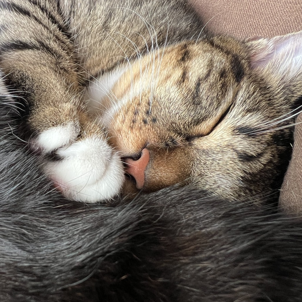 Raised in a litter of 6 happy, healthy, and very clean kittens by a bonded pair of dedicated mama cats, Chopstick thrived from day one. His skill and agility in play matches his calm human curiosity, only outdone by snuggled napping with his bonded brother Ship (KRLA-A 86346). Chopstick regularly enjoys and luxuriates in meet-n-greet playtime with neighborhood friends of all ages. So he sees his fill of kitten and human playtime. Chopstick and Ship, a bonded pair of brothers. They are so curious and social…greeting guests at the door…and smart/cautious enough to not dash outside. Perfect for a family or someone wanting calm, social, happy dog-friendly cats. They have not damaged the house or furniture or eliminated anywhere outside of their litter boxes. They have slept at night in a kitty-specific room and if you are wanting cats to co-sleep with humans, they should transition with ease. They LOVE naps in bed with a human. The boys should stay together. They appear, by size/weight, to be older than they are…but they were very young kittens still with their blue eyes and awkward bodies late June 2025. Reach out to Chopstick’s foster mom jennifermtooley@gmail.com to learn more or meet dear Chopstick.