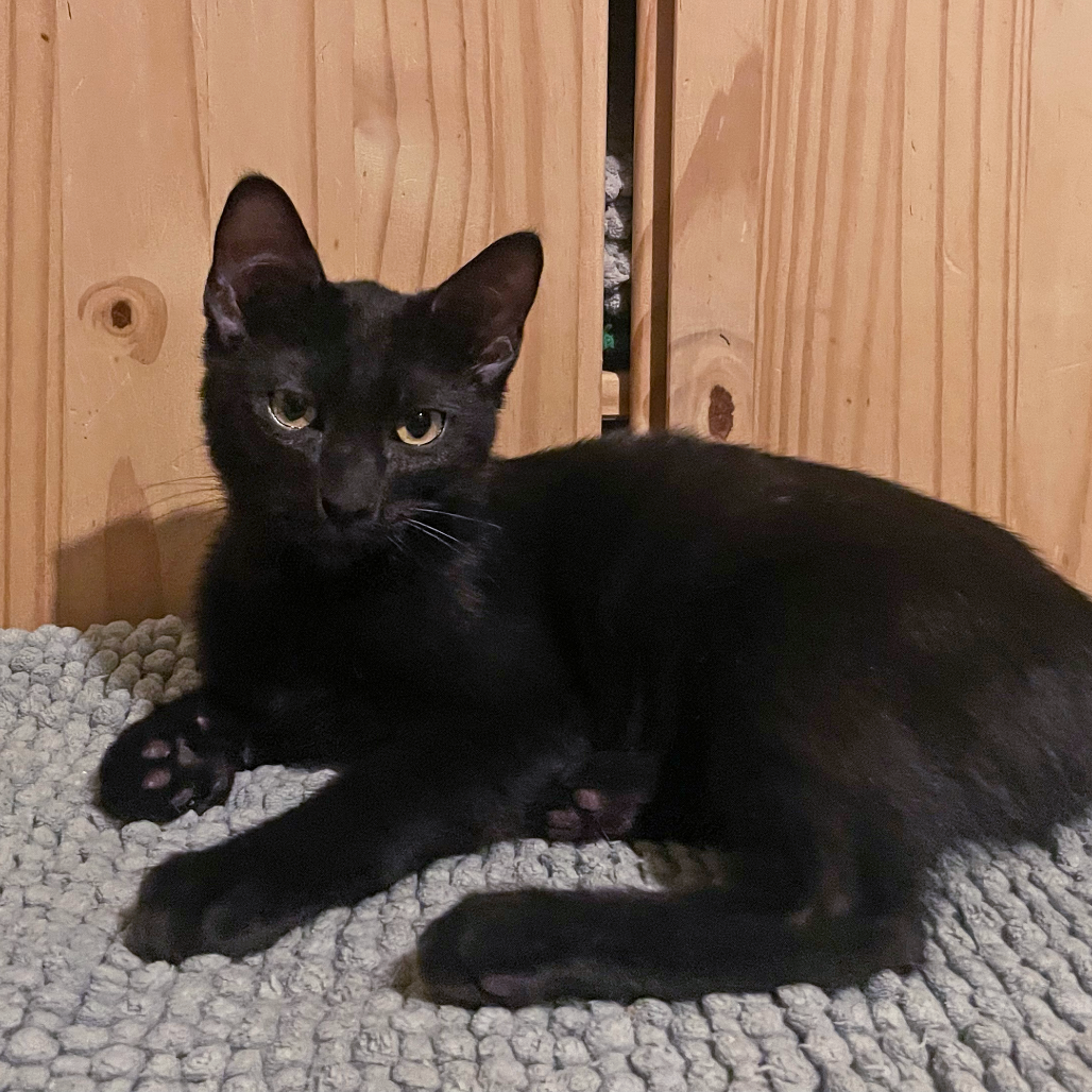Scarpaccia is a high-energy kitten who does well in a group and makes friends easily. He initiates play more often than anyone with less energy, so he will need a buddy who is at least close to his activity level. He’s not dominant or bossy but he’s so play motivated that it can be hard to tell. Scarpaccia is fully box-trained and on a very healthy wet and raw food diet. Due to his age and activity level he will need to be adopted to a home with a buddy or into a home with a very playful companion. His friends are his mom, Caterine, and fellow buddies Camporelli, Nutella,