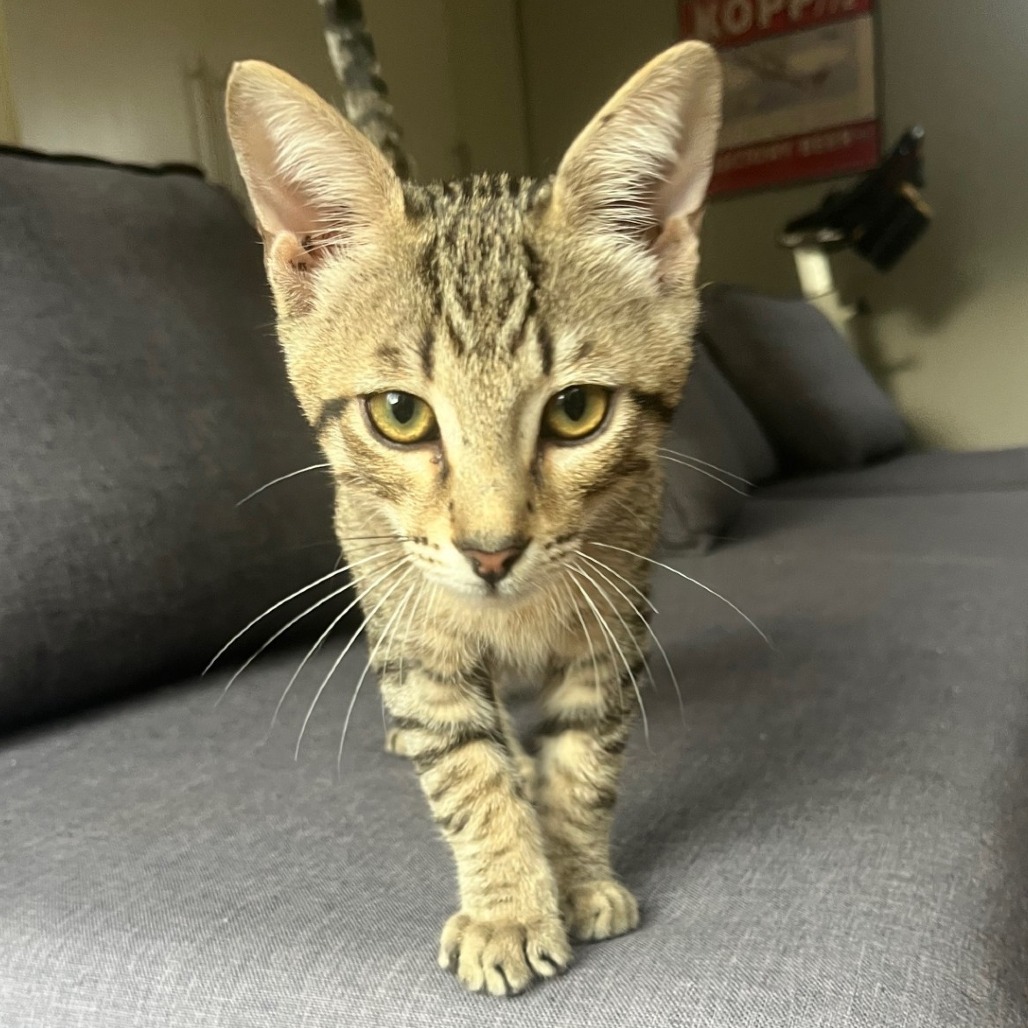 Peter — The Loyal Sweetheart Confident, loyal, and gentle — Peter is the golden-coated leader of his little family. Peter (lighter tabby) is the big brother and natural leader of the trio. There’s something special about him — perhaps a hint of Abyssinian or Oriental Shorthair — giving him that elegant, lean frame and confident, curious stance. Peter is regal but never aloof; he adores humans, loves a good play session, and keeps a gentle watch over his sisters, Lois (KR ID 86498) and Stu (KR ID 86578). If you’re looking for a well-rounded companion who brings calm leadership and affection, Peter’s your guy. He’d be delighted to go home with one (or both!) of his sisters, but he’ll also thrive in a loving home of his own. Please contact the foster at regchoch04@yahoo.com