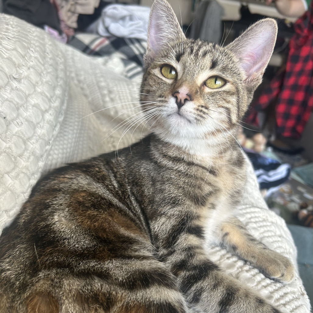 Chai is a sweet little lady that loves playing with her siblings and people. She’s a clingy girl with a lot to say and a lot of love to give! She loves to cuddle up on the couch at night and fall asleep with you and will still be there right next to you when you wake up. She tends to tolerate other cats but mainly only likes to engage and play with her bonded sister Calypso (KRLA-A-85652). She loves to play with wand toys, balls, and scratchers! This sweet girl would love to go to a home that can give her and her sister lots of love and play time. Please contact the foster at jenflorez@kittenrescue.org