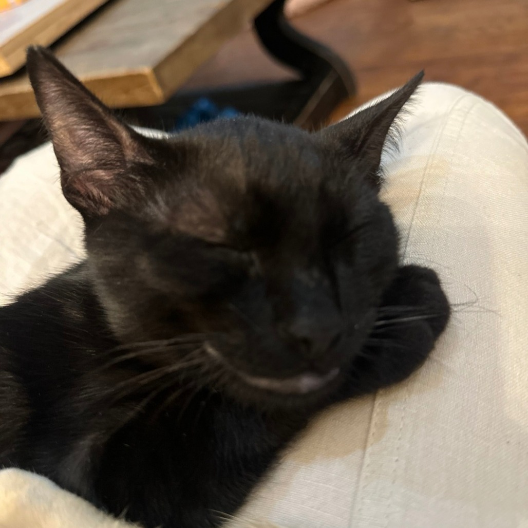 🐾 Meet Decklyn — The Sweet & Playful All-Black Kitten! 🖤 Decklyn is a gorgeous all-black kitten with a heart just as big as his purr! He’s incredibly sweet, affectionate, and full of playful energy. This little guy loves to explore, chase toys, and snuggle up once playtime is over. Because Decklyn thrives on companionship, he must be adopted with one of his siblings or go to a home that already has a young, friendly cat to keep him company. He’ll do best in a home where he can continue to play, wrestle, and cuddle with another feline friend Please contact his foster Katie katiescats1@gmail.com