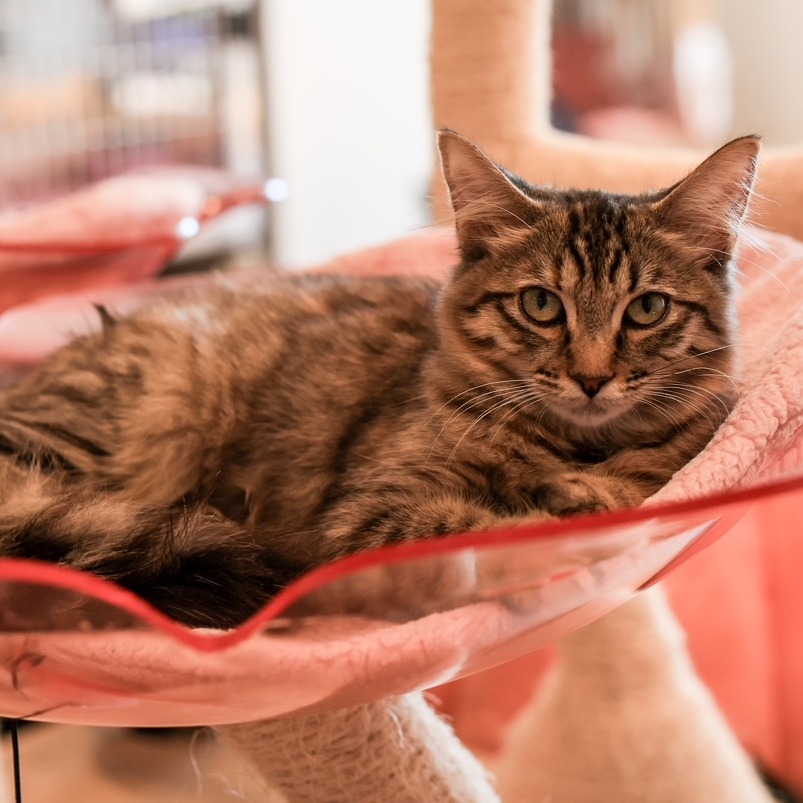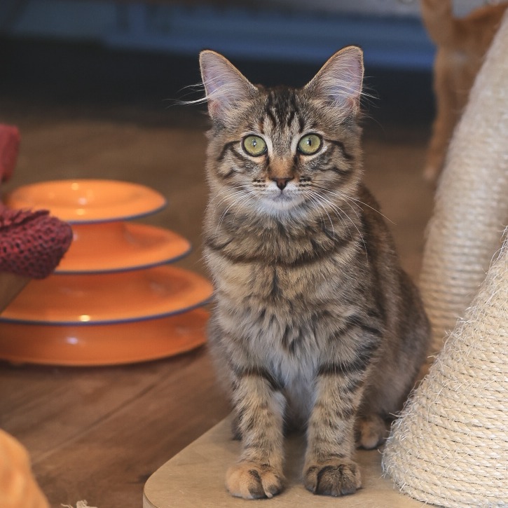 Meet Bella, a gorgeous fluffy brown tabby with a big heart and a playful spirit! Bella is the confident, outgoing sister who loves to explore, play with toys, and soak up attention. She’s curious about everything and isn’t afraid to make new friends—both human and feline. Bella is also very nurturing and helps her shy sister, Minnie, feel safe and loved. With her soft fur and even softer personality, Bella will make every day brighter. She’s bonded with her sister, Minnie, and they need to be adopted together so they can keep sharing their special sisterly bond. Please note: Bella must be adopted with her sister, Minnie, KRLA-A-86579. Please contact the foster at manager@KittenRescue.org