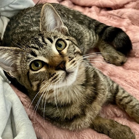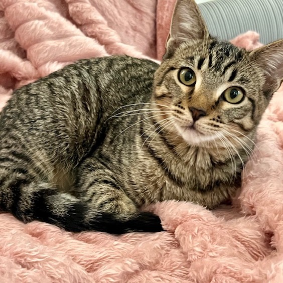 Her foster mom says she is a love bug. Super affectionate and wants to be by your side. She thrives on love, cuddles, and companionship and also gets along well with other cats. A true lap cat who enjoys watching tv ... so if you love movie nights she is your girl! Please contact the foster at airbearz23@yahoo.com
