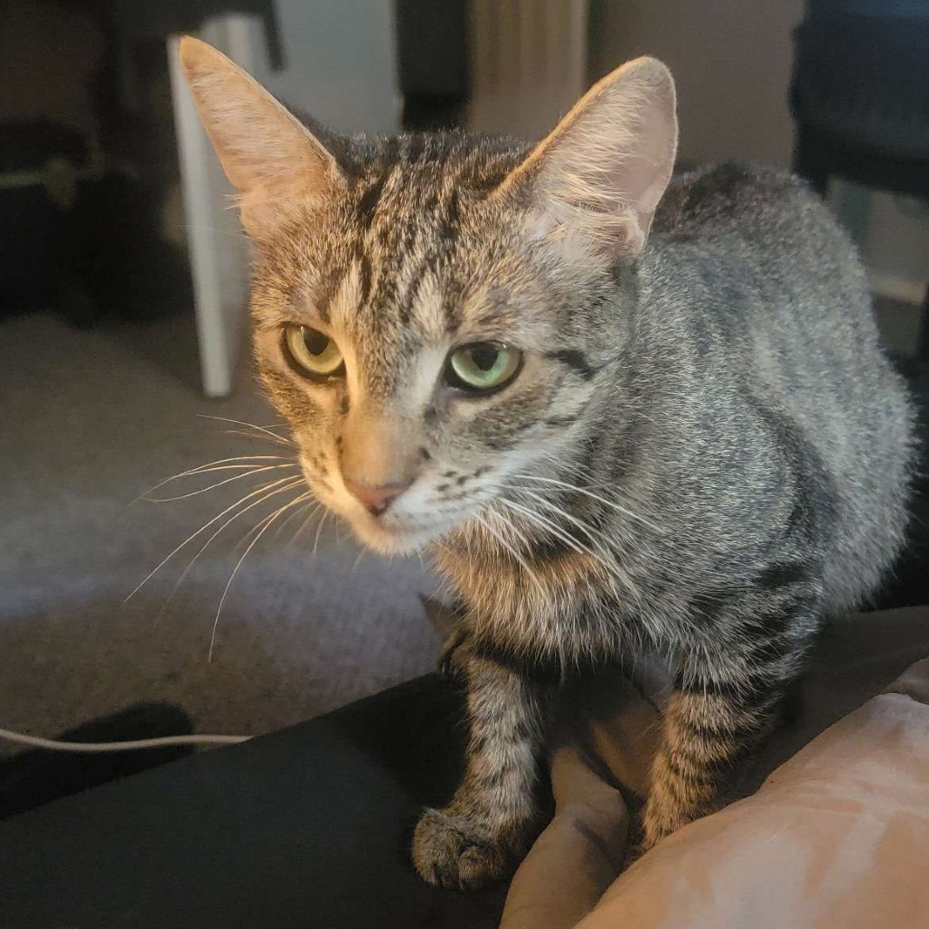 Miss Joy is looking for her forever home, and she's such a kitty success story. She was a brave and responsible mama to 7 babies- all while still being less than a year old! Now that her babies are all grown up, she's looking for a family that'll let her be the baby she never got to be. She's a little shy, but getting braver every day. She loves to be petted on her little head and will follow you from room to room so she can supervise your activities. Her favorite treat is a dry and crunchy greenie, and she loves catnip toys she can throw and wrestle- she comes with her favorite catnip pickle and some other favorite items of hers. She'd do best as a solo kitty, OR she would be so happy to get adopted alongside her son, baby Mushroom (KRLA-A-86727)! Could you be the right fit to give this beautiful young lady a forever home? If you think miss Joy might be your new best friend, reach out for a no-pressure meet and greet with this special little lady. Please contact the foster at emmafoyle@yahoo.com