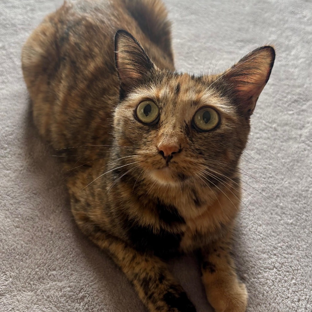 You can’t tell from photos, but Sandy Cheeks is one of the softest kitties ever! This gorgeous girl was a young mama who is now ready to reclaim her lost youth. She is a sensitive and sweet kitty who melts once she trusts you. She is still a bit playful; wand toys are her favorite. Sandy lives with other kitties now, but they sometimes make her nervous (which might be protective instincts since her son is still with her). She would be a good solo kitty, could be adopted with her son Patrick Star (KRLA-A-86744) or could likely peacefully cohabitate with another laid back cat. Follow Sandy and her foster siblings on Instagram @kizmetkats. Please contact the foster at kizmetkats@gmail.com