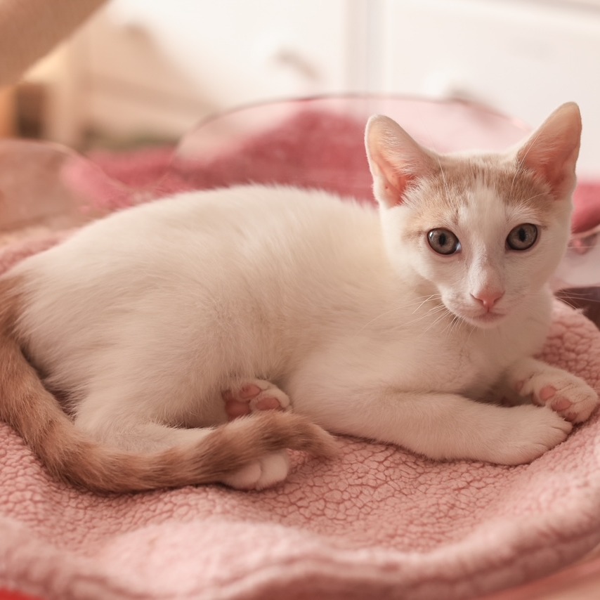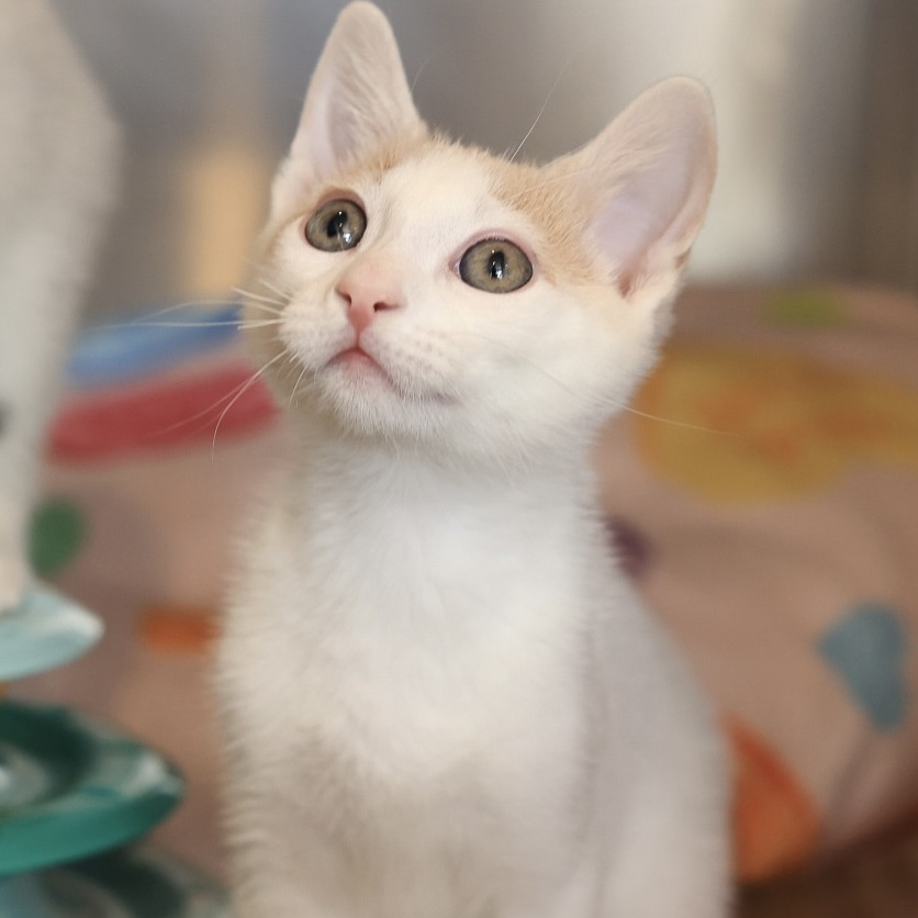 Reed Richards, one of our Fantastic Four kittens, is ready to stretch his way right into your heart! This handsome boy is mostly white with soft orange markings, giving him a look as unique as his personality. Reed is curious, playful, and always ready to explore new corners of his world. He adores wrestling and chasing toys with his siblings, and when he’s all tuckered out, he’s happiest snuggled up in a cozy pile of kittens. He’s the perfect mix of adventurous and sweet, and he’s sure to bring lots of fun and joy to his forever home. Because Reed is still a young kitten, he must be adopted with one of his Fantastic Four siblings - Sue Storm KRLA-A-86753, Ben Grimm KRLA-A-86756 or Johnny Storm KRLA-A-86755 - or join a home with another playful, similar-aged kitten to keep him company. Could Reed Richards be the superhero your family has been waiting for? Please contact the foster at manager@KittenRescue.org