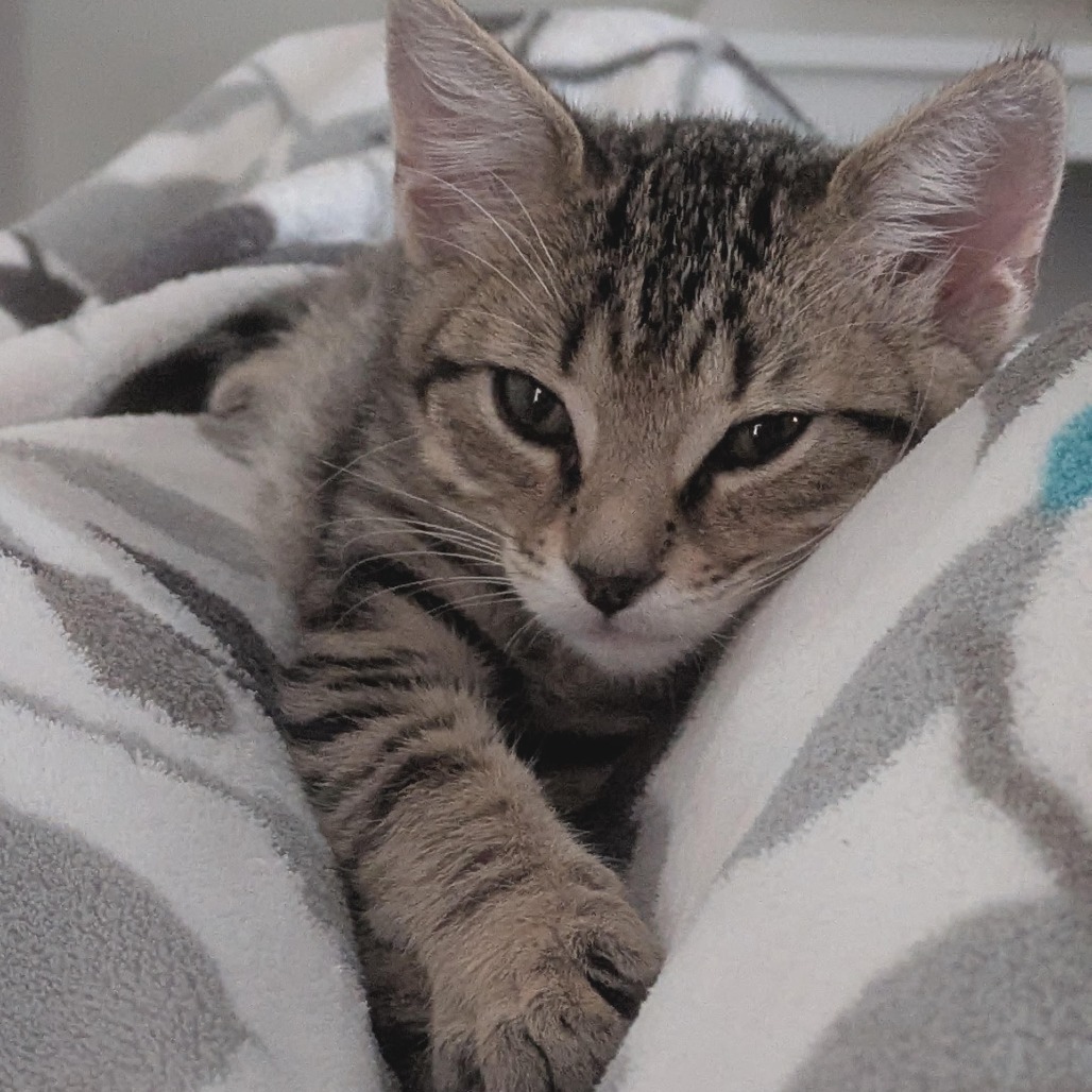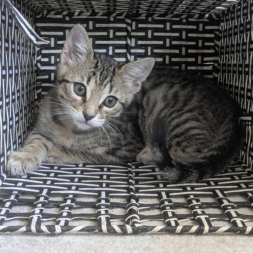 Victor is a handsome kitten with personality plus! He loves to play with lots of different types of toys and is always curious to see who’s coming into the room and what people are doing. Victor is unafraid of people, even though they look like giants to him—he loves to brush up against legs and insert himself right into the action. This one is a bit of a rascal but at the same time he will be endlessly dedicated to the people who feed him. After a good round of play, he likes to settle down with his feline or human companions for a loving snuggle filled with gentle purring. If possible, Victor would love to be adopted into your loving home with one of his siblings: sister Echo (KRLA-A-86759) or brother Zulu (KRLA-A-86764). Please contact the foster at rubinsonyoungblood@gmail.com
