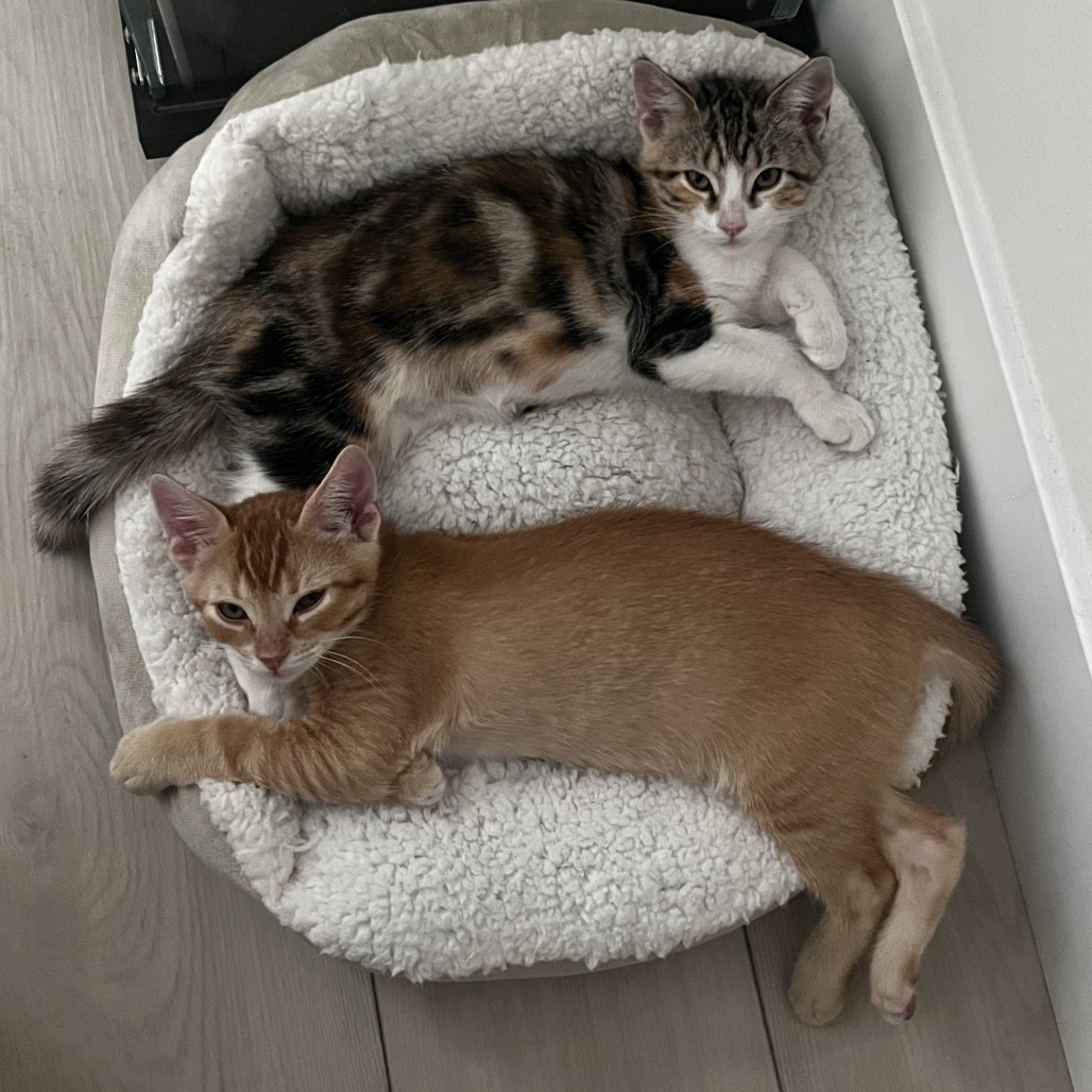 Meet Whiskey, a big-eared, high-energy orange tabby boy with a heart full of love. He's incredibly friendly and confident, always ready to play, snuggle, or nap in your arms. Whiskey is very easy to handle—he enjoys being held, loves head scratches, and has a hilarious appetite (he never misses a meal!). He’s also great at using the litter box and keeps himself tidy—though he may steal a few extra bites from his sister if you’re not watching! Whiskey and his sister Charlie, KRLA-A-86758, are from the same litter and have grown up together. They play, sleep, and grow side-by-side, and naturally help each other burn off energy and build confidence. Because of their strong bond, they must be adopted together to ensure continued healthy development and emotional well-being. Please contact the foster at sirius.zhao1@gmail.com