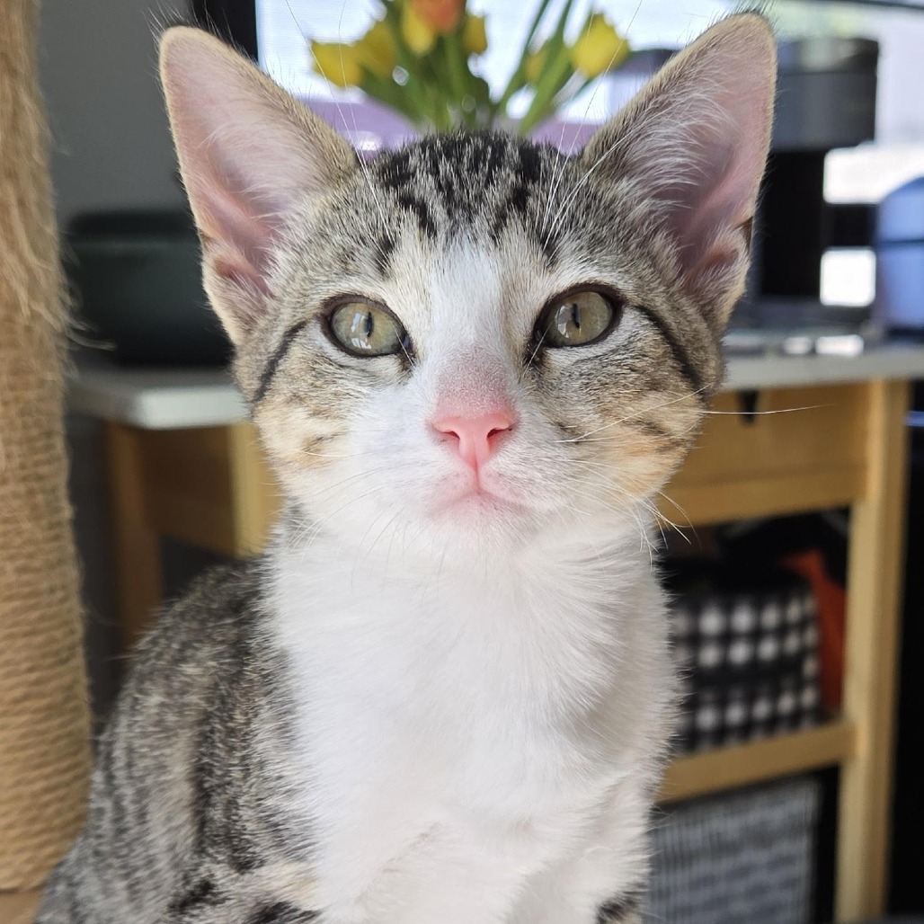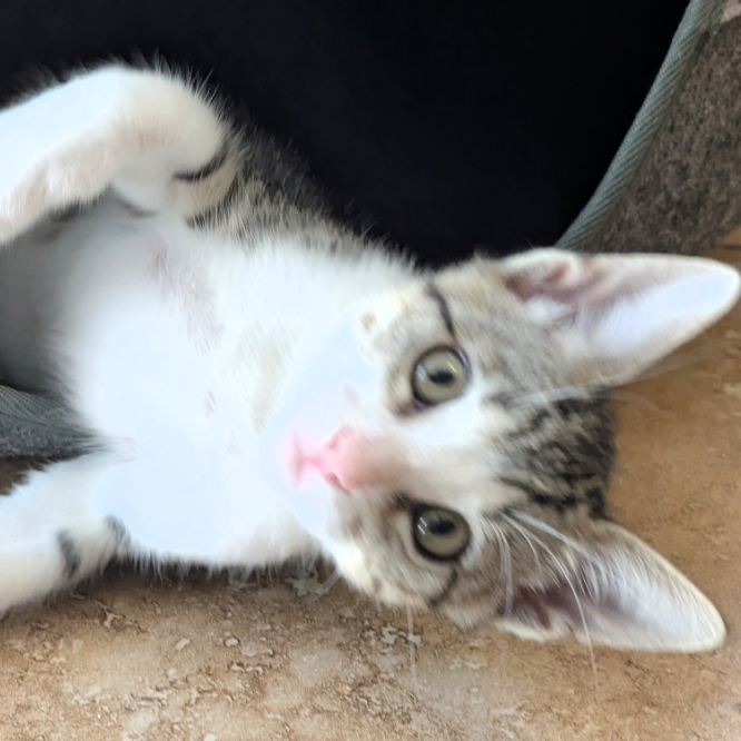 Zulu is sweet, smart, and handsome! He is a very playful and affectionate kitten who would love to be welcomed into your home. Despite being the runt of his litter, Zulu has always been fearless and full of spunk. He loves to play with lots of different kinds of toys and enjoys a good gallop across the house when it’s time for the zoomies. He enjoys hanging out with humans as well as other cats and is a curious kitten who will roam around to see what’s going on. He likes to sleep in bed and purr with his humans. Zulu will be a wonderful pet for someone looking for a faithful companion. If possible, Zulu would love to be adopted with one of his siblings: sister Echo (KRLA-A-86759) or brother Victor (KRLA-A-86762). Please contact the foster at rubinsonyoungblood@gmail.com