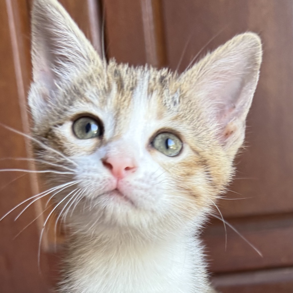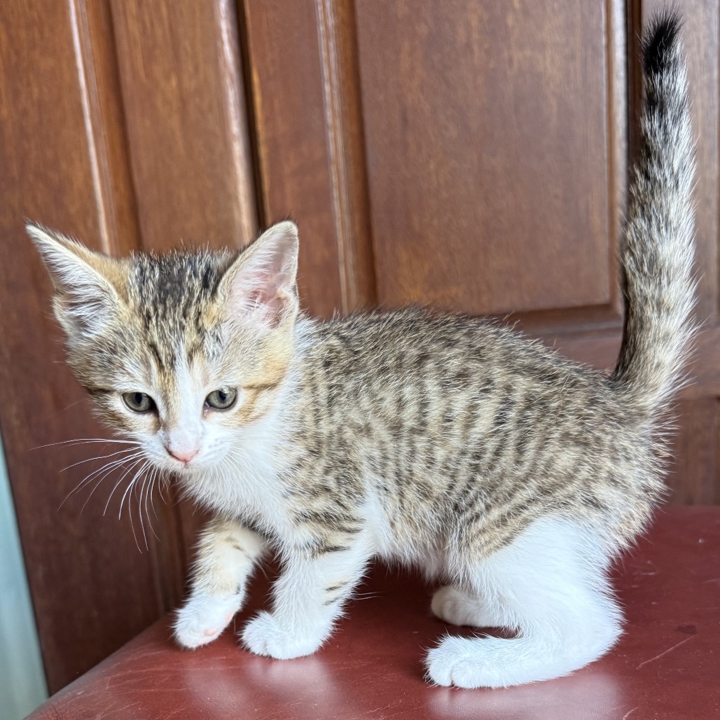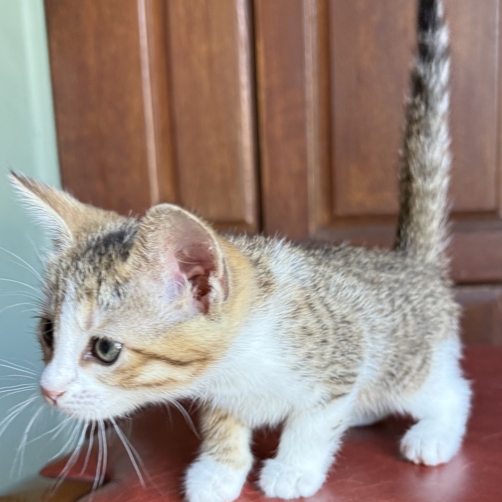 Ginger is sweetness and spunk wrapped up in a soft striped coat, topped with the most irresistible pink nose and sparkling eyes that light up with curiosity. She loves being held and will purr contentedly in your arms, but she's no stranger to adventure. Always ready to climb a little higher or leap a little father, Ginger thrives on discovering new challenges. She is as charming as she is adventurous, making her an ideal companion. If you're looking for a kitten who will cuddle close and brighten your home with playful energy, Ginger is ready to be your perfect match. Please contact the foster at laserrano@mac.com