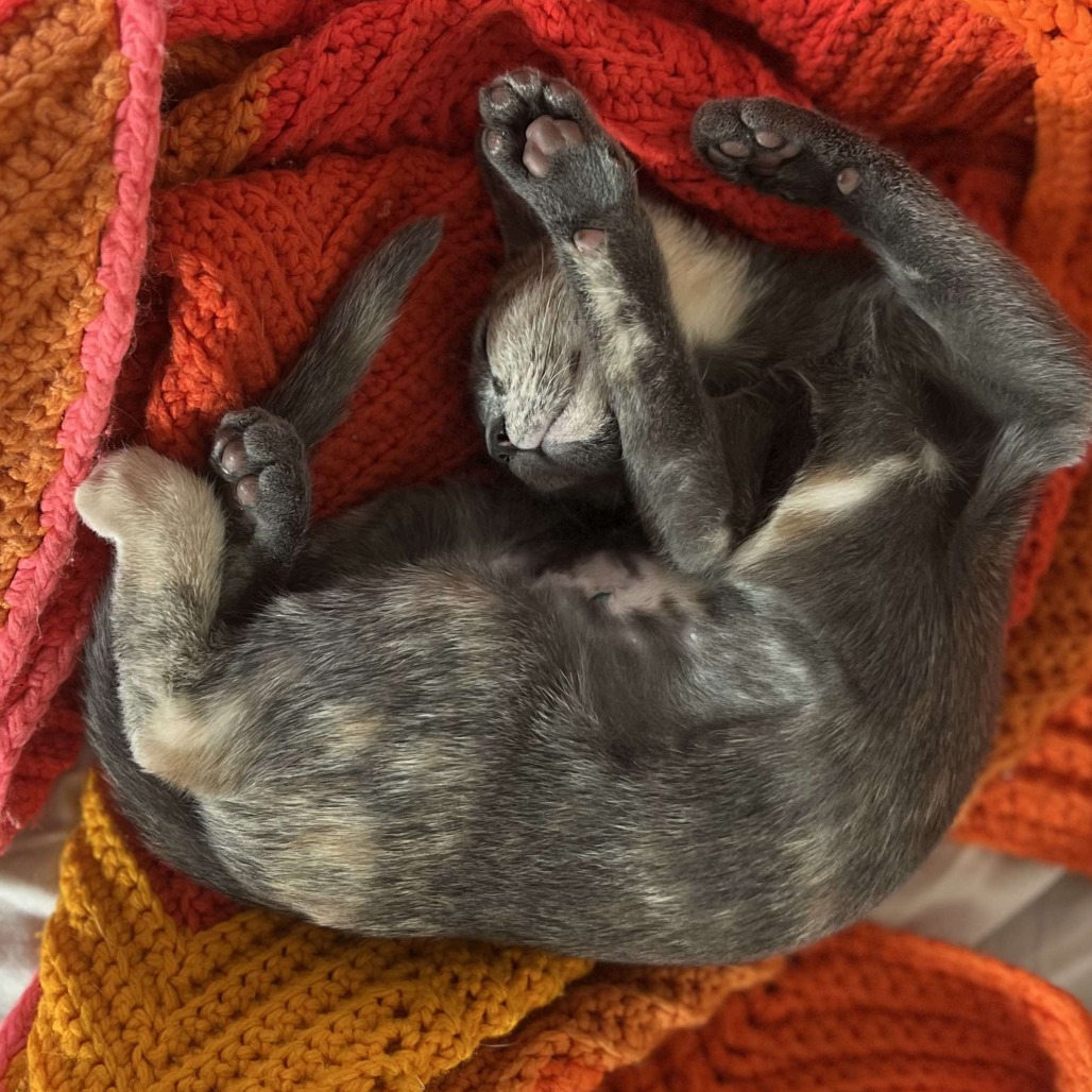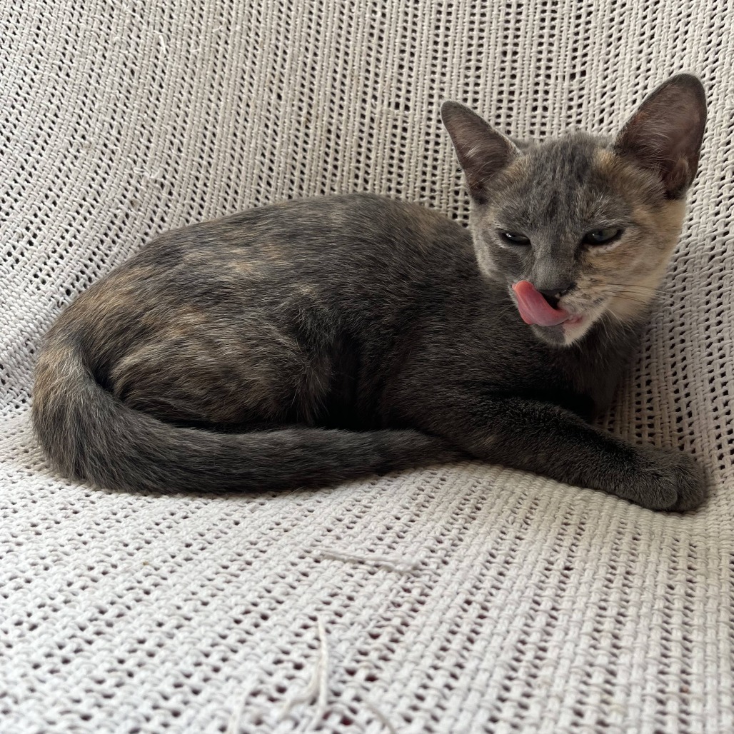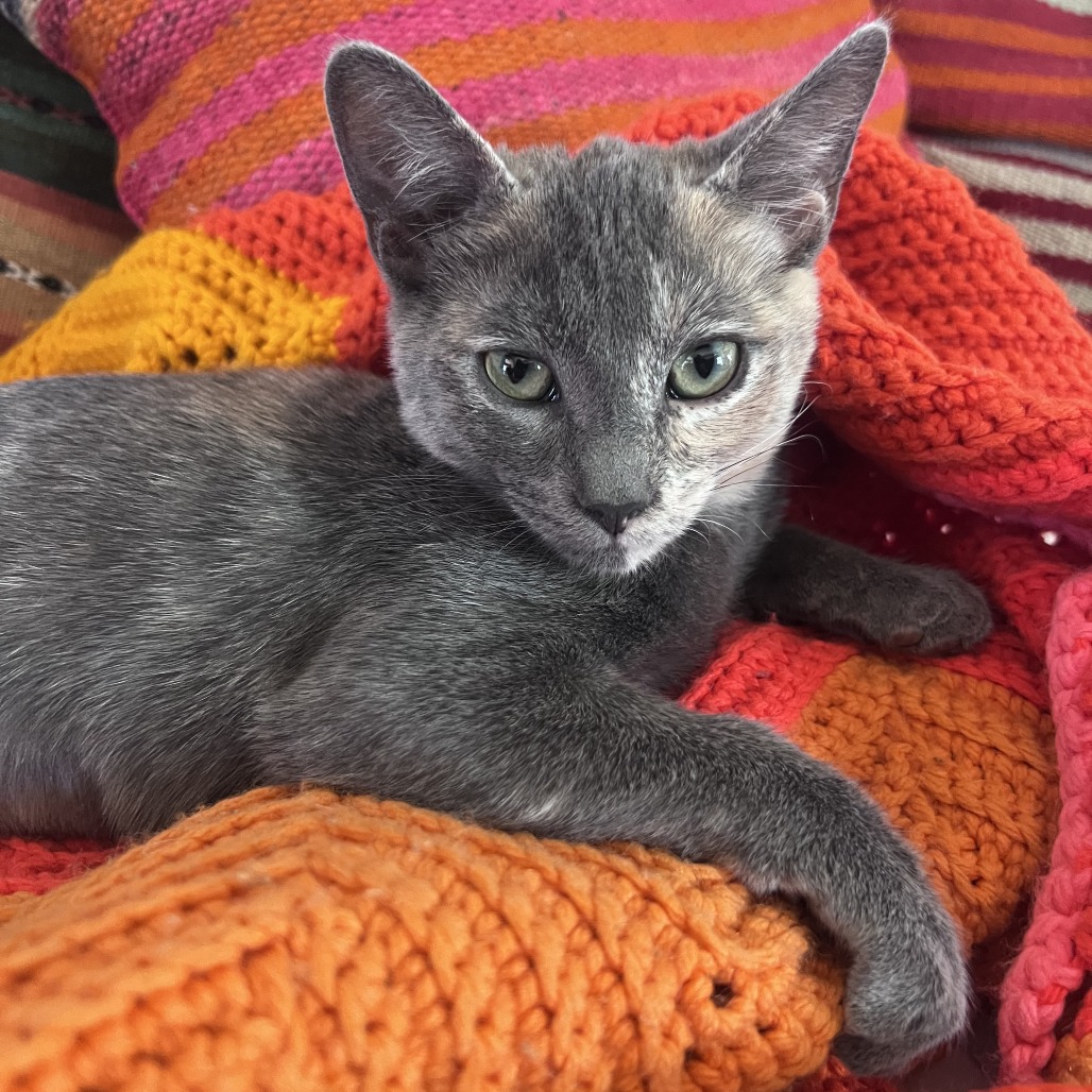 Marcella is the most sensitive and sweet kitty you’ll ever meet. You may think she’s a bit shy, but she’s actually yearning for love and pets. She’s a polite little kitten—her meows aren’t demanding; on the contrary, they melt your heart, and you’ll find yourself giving her anything she wants. She loves to play and nap. One of her favorite things is to gently approach after dinner, settle onto your lap, soak up some pets, and purr her way into a nap. Marcella absolutely loves her siblings. She comes from a litter of five and is particularly bonded with Galleta (KRLA-A-86803), the quirky one of the pair. Check out Galleta’s profile—it would be wonderful for them to stay together. That said, Marcella is definitely a kitty who loves her human first. She would be an incredibly sweet companion, whether she’s sitting next to you on the couch or curling up on the bed. Whoever ends up with Marcella is going to be adored by this gentle, loving little soul. Please contact the foster at frompepitosplace@gmail.com