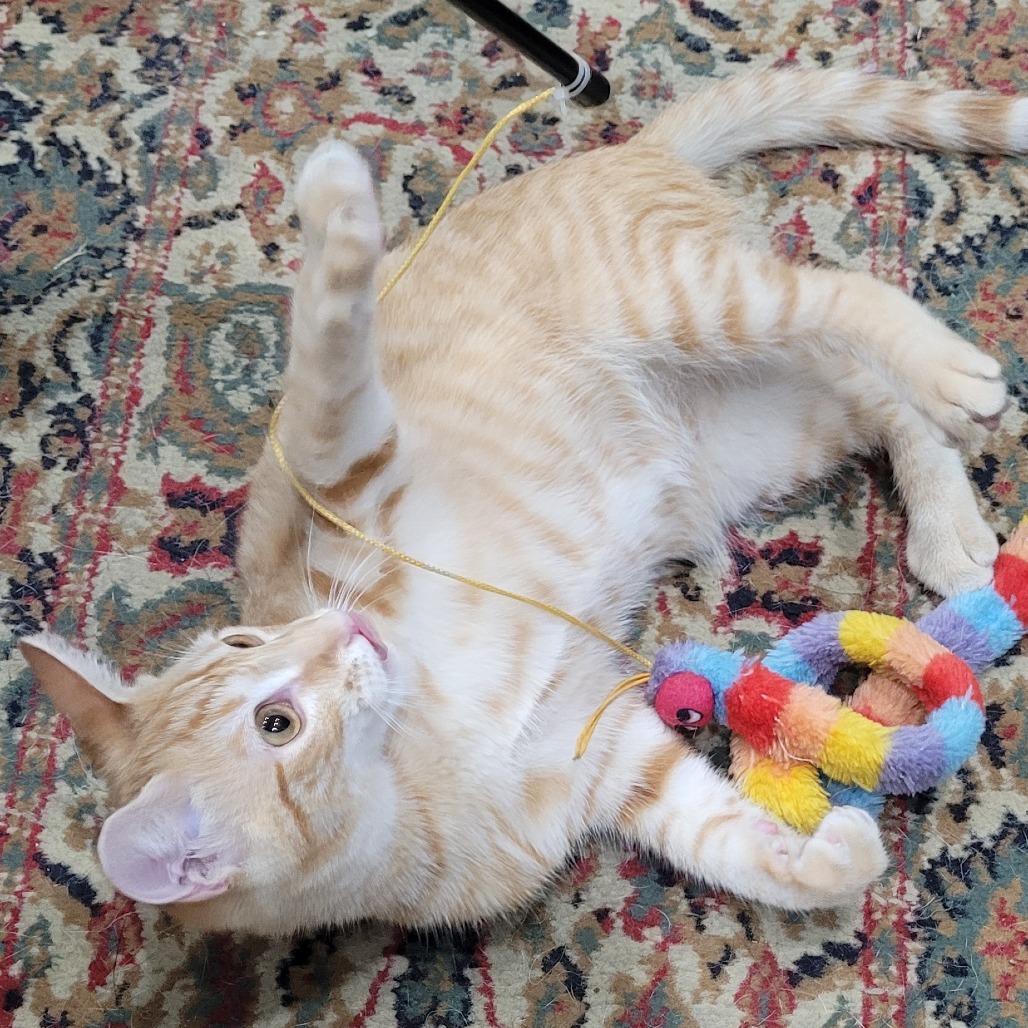 Tucker is a playful, silly, animated, and loving kitten who is searching for a home to call his own! He loves to be held like a baby and get his belly rubbed, and he is always up for a round of play or chase. He loves to follow his foster around the house, and is always there to greet them when they return home. Tucker was found on the street and walked right into his foster's house on his own. He knew he wanted to be a house cat! Tucker would love to be adopted into a social home with other cats, dogs, or a family with multiple people in the household. Tucker has not been around children but based on his personality may be suitable for a home with older children. Tucker currently lives with two dogs and is comfortable around them. He would be the ideal addition for a family who already has a cat who wants a buddy. He LOVES other cats! Tucker is an easy cat and would also be suitable for a first time cat owner. Please contact the foster at techieturnover@gmail.com