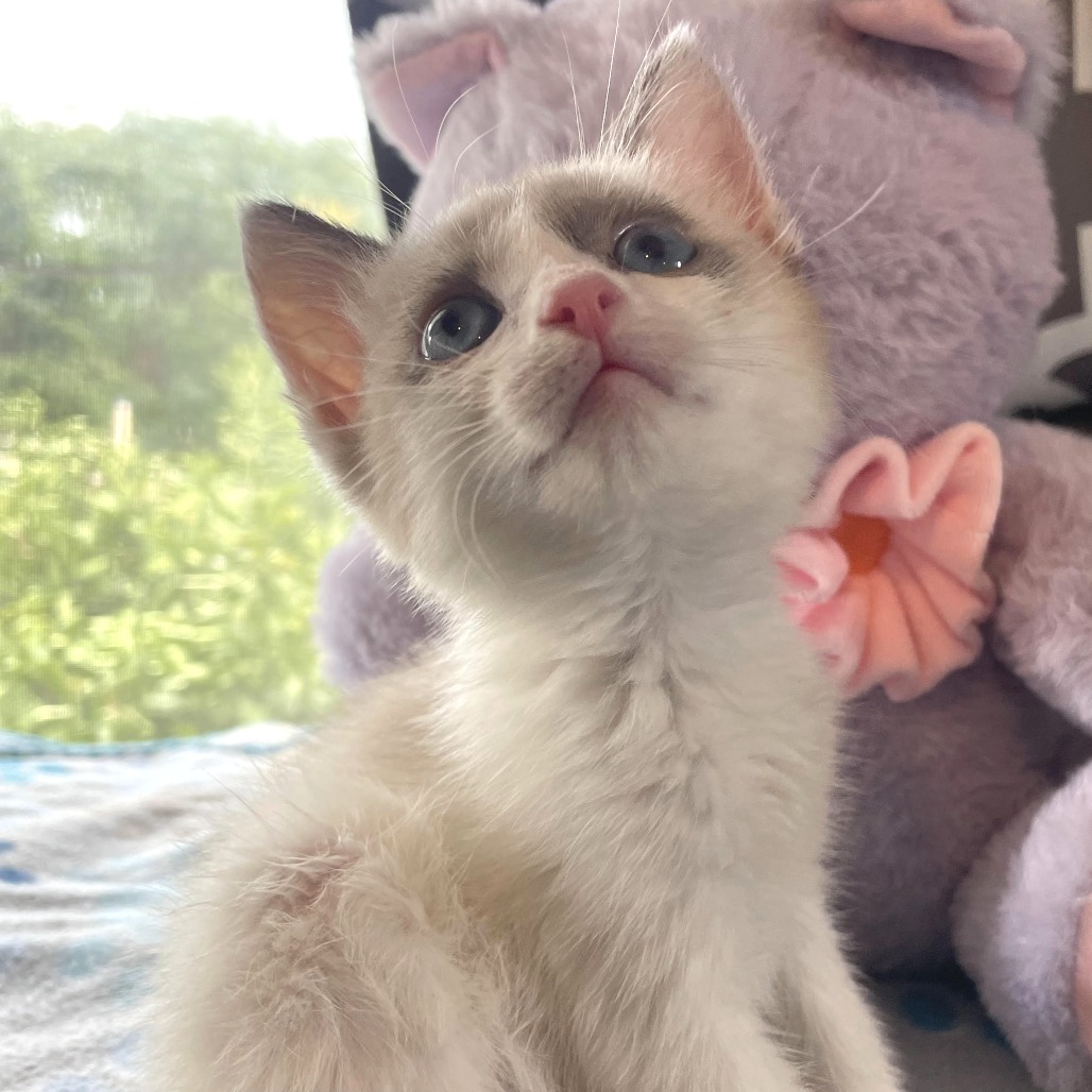Meet Silk – the bold explorer! Silk and Jute,KRLA-A-86827, were just babies when they were placed on the euthanasia list, dropped off at the shelter and too young to eat on their own. That is, until Kitten Rescue and their foster mom stepped in to save them. Now they’re thriving, playful, and full of life! Silk is a confident, curious little adventurer who loves discovering every nook and cranny of her world. You will find her chasing spring toys, zooming through tunnels, or playing chase with her brother, Jute. And when playtime winds down, she transforms into the ultimate cuddle companion — always nearby, ready for snuggles and soft purrs. Silk brings a perfect mix of sugar and spice and everything nice to any home. This girl isn’t just sweet — she’s famous! Silk has been the star of a Nathan the Cat Lady social media video, stealing hearts with her curious eyes and playful spirit. If you’re looking for a kitten who’s equal parts daring explorer, superstar, and snugglebug, Silk is your girl! Silk and her brother Jute are inseparable — where one goes, the other is sure to follow. They’re a bonded pair and need to be adopted together into a loving forever home. Please visit Jute's profile! Please contact the foster at cjmacias93@gmail.com