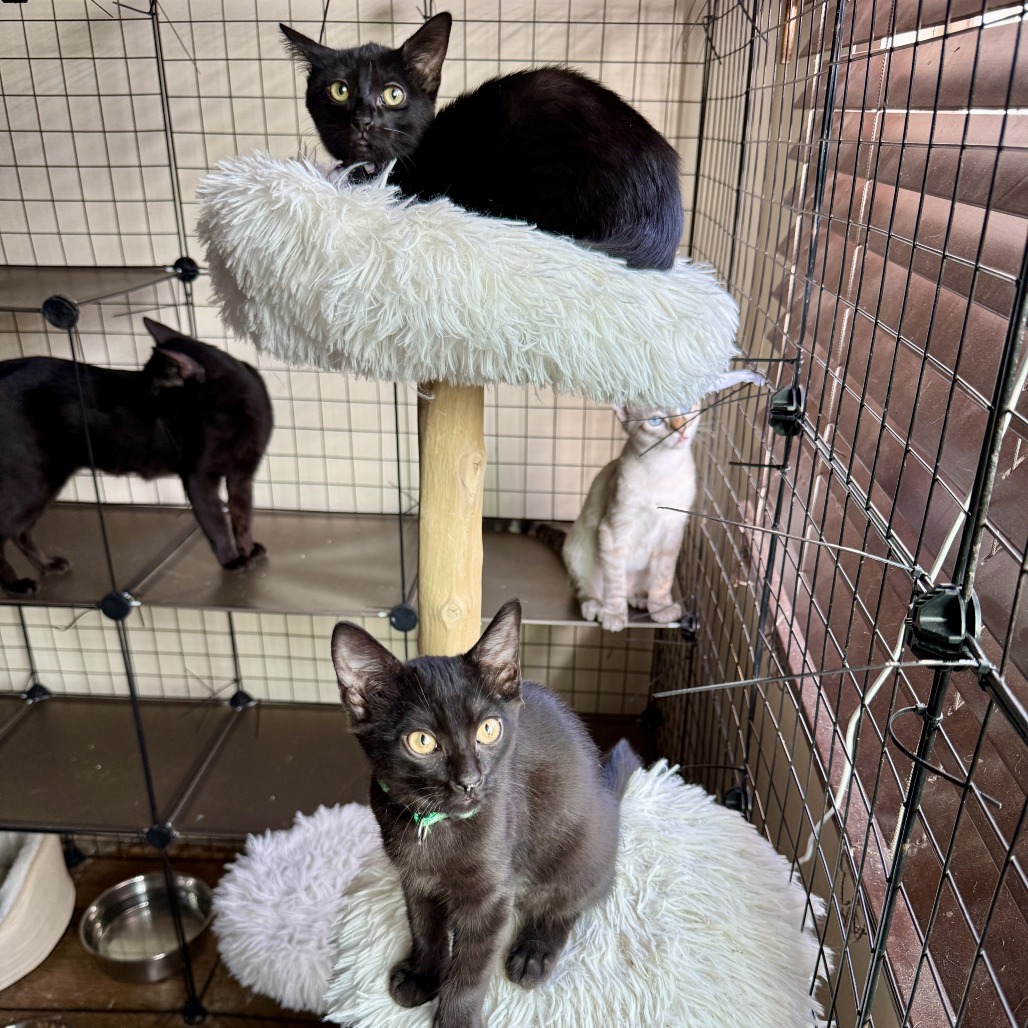 Meet Cricket and His Adorable Family! Cricket and his siblings are a lively bunch of playful, funny, and affectionate young kitties who find joy in life’s simple pleasures — tasty wet food, fun cat toys, and plenty of love from their foster mom. Their days are filled with games of chase around the living room, followed by cozy cuddle piles as they nap and recharge for their next adventure. Cricket and his sister Ladybug (KRLA-A-86872) are the confident explorers of the group, while their sisters Zoey (KRLA-A-86875) and Zara (KRLA-A-86874) tend to follow their lead — and all four are an absolute delight to watch as they play, wrestle, and tumble together. These sweet siblings can be adopted in pairs or even with one of their loving moms, Cherish (KRLA-A-86869) or Olympia (KRLA-A-86870). The whole family was rescued after being abandoned in an apartment when their former owners moved away. Since all the kittens nursed from both mamas, it’s hard to tell who belongs to whom — but both Cherish and Olympia are young, playful moms who love joining in the fun. You’re invited to meet this beautiful feline family and see which of these charming kitties might be the perfect new addition to your home. Please contact the foster at karenclarkfostermom@gmail.com