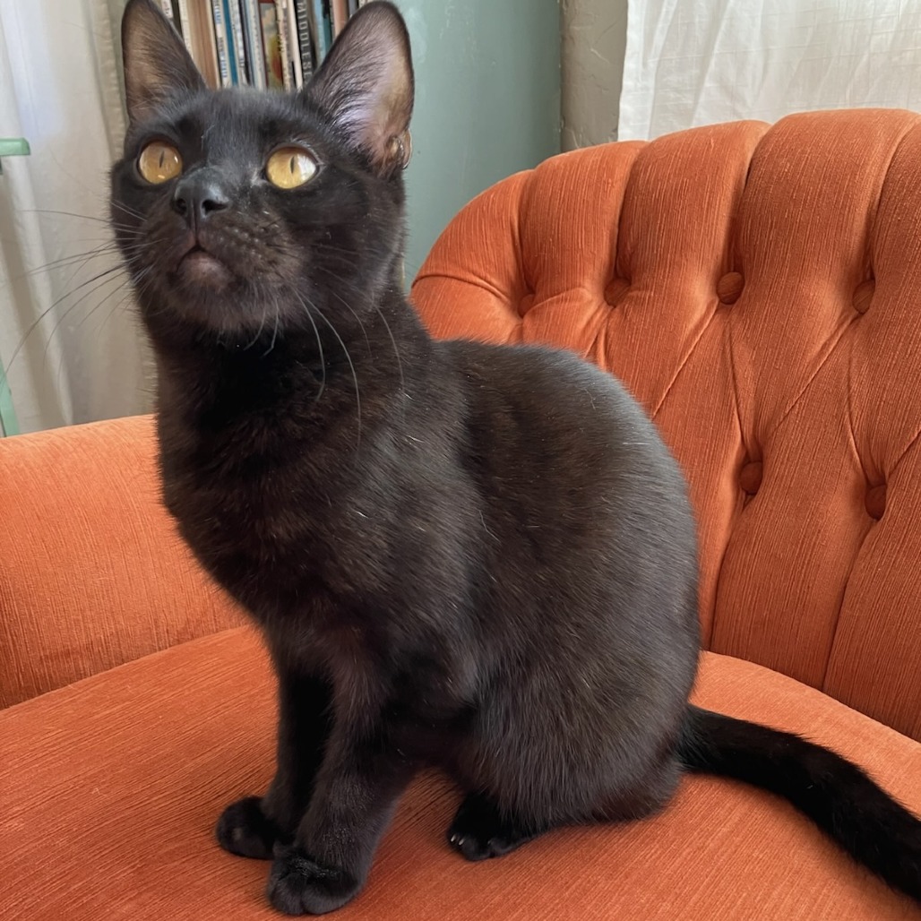 Sleek, shiny, and sporting the cutest polydactyl mittens, Richard is the definition of a curious scamp. He’s first on the scene for every new noise, toy, and adventure, zipping around the house like he owns the place (and honestly, he kind of does). Richard may be mischievous, but he’s also a total sweetheart. He loves shadowing his humans, supervising all activities, and showing off his goofy kitten energy. One minute he’s pouncing; the next he’s purring in your lap. Because he’s bursting with kitten zest, Richard needs another young, active cat in the home to play with, wrestle with, and learn from. He thrives with a buddy who can keep up (and, if you’re looking for two, he especially likes his foster siblings Samuel KRLA-A-86878 and Rosie KRLA-A-86877). If you’re ready for endless entertainment, extra toes, and a whole lot of charm, Richard is your guy. Please contact the foster at kizmetkats@gmail.com