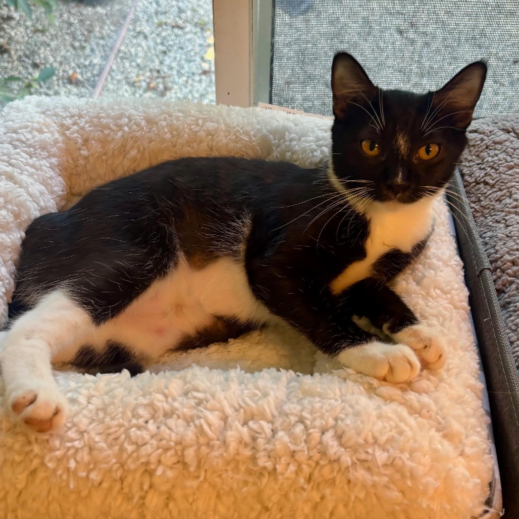 Meet little lady Rosie! Rosie is a sweet girl and relatively calm kitten who loves being nearby and watching the action unfold. She is friendly and affectionate with humans and gets along with all the other kitties she meets. She is looking for a home with another young cat. Her favorite friends are her brother Pattycakes (KRLA-A-86879) and foster brothers Samuel (KRLA-A-86878), Richard (KRLA-A-86876) and Pomelo (KRLA-A-86097). Follow Rosie and her foster siblings on Instagram @kizmetkats. Please contact the foster at kizmetkats@gmail.com