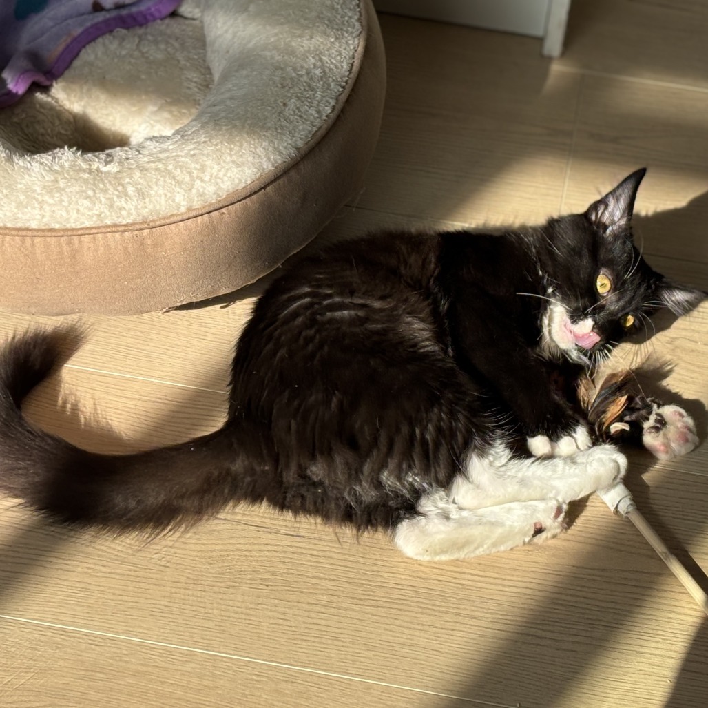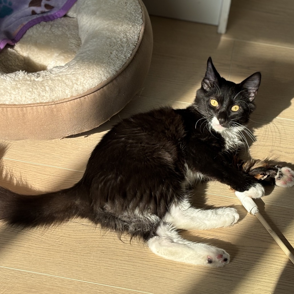 Hi my name is Jellybean! I am a very good-looking boy with a regal air that makes the neat black-and-white tuxedo I sport all the more fitting. I am the most independent of my littermates, but I still enjoy playing with my siblings Waffle (A-86913), Pancake (A-86914), Gumball (A-86912), and Holly (A-86916) as well as my cousin Mocha (A-87009). I am very good at balancing pets, playing, and solo time. My foster mom loves my fluffy mane that almost appears to have a touch of silver in it. I am fairly low-maintenance but I still enjoy playtime with springs and feather wands. Otherwise I’m happy just to hang out and snuggle with you! Whether you already have a furry friend at home, or you’re a first-time cat owner, I would love to join your family! I can be adopted with one of my foster buddies or go solo. Please contact the foster at cortneyjhouseknecht@gmail.com