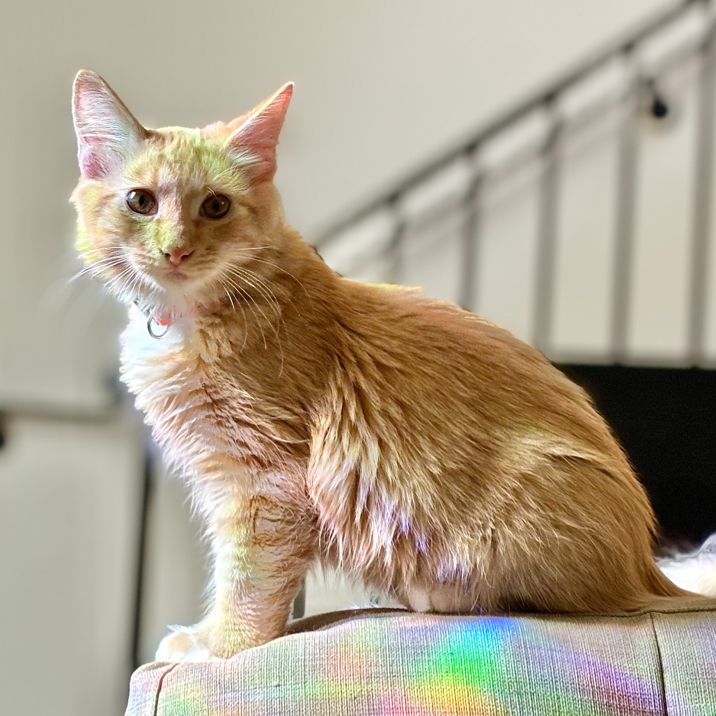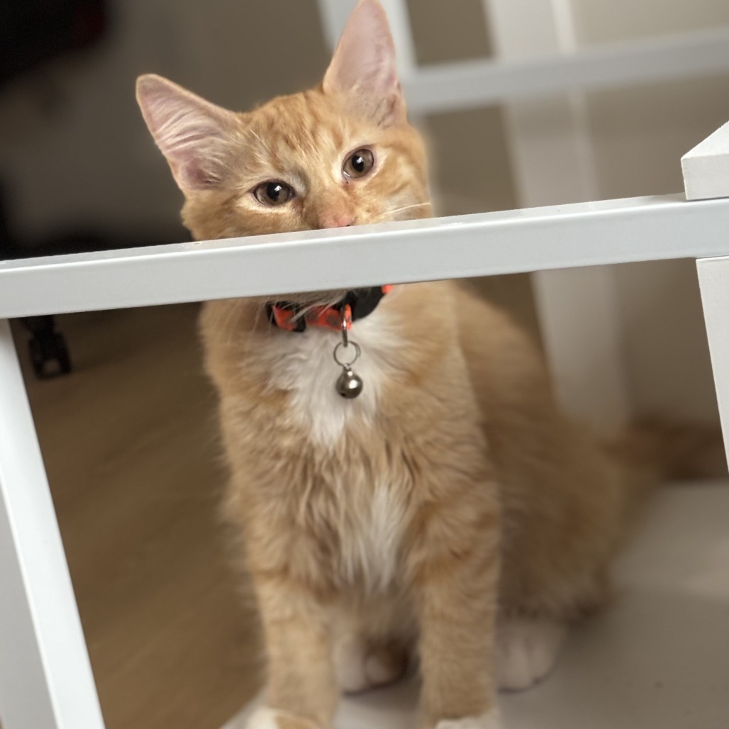 Hi my name is Pancake! I am a fluffy orange and white boy who would love to be your cuddle buddy! I am the most mellow of my littermates, but I know how to balance cuddles and play. My favorite activity is being pet and held by humans. I will sit in your arms for hours and just purr. I do also love to play, especially with springs. I enjoy running around with my siblings Waffle (A-86913), Jellybean (A-86911), Gumball (A-86912, and Holly (A-86916), and my cousin Mocha (A-87009). I am content with time to myself to explore on my own but also love the company of people and other cats. At the end of the day I would love to curl up with you and be your furry heat-warmer! I love the company of other kitties, so I would fit into a home that already has a cat or better yet, you can adopt me with one of my brothers! I can also be okay in a single-cat household if you’re ready to be my full-time cuddle buddy! Please contact the foster at cortneyjhouseknecht@gmail.com