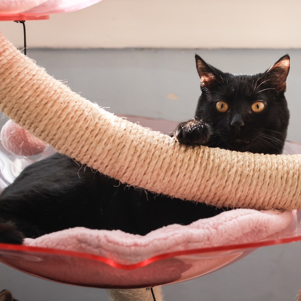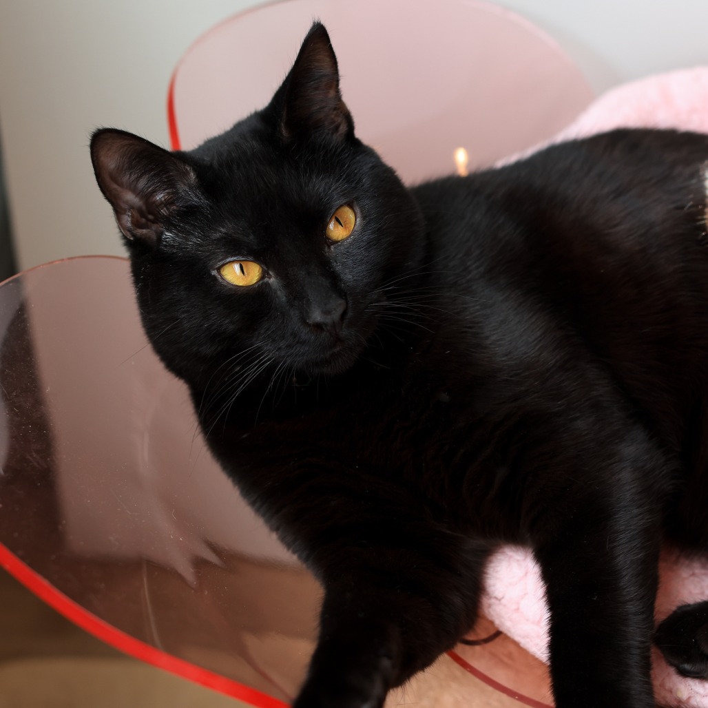 Rufus is a sleek, panther-like black kitten with movie-star looks and a heart full of resilience. He came to us after suffering fractures in both of his back legs, but after a long road of rest, care, and healing, this brave boy has made a full recovery and is ready to start his next chapter. Now that he’s feeling great, Rufus is doing what kittens do best—playing, zooming, and soaking up love. He’s sweet, social, and happiest when he has a feline friend by his side. Rufus would love to be adopted with his best buddy Gordon (KRLA-A-87194), or into a home with another young, playful kitty who can keep up with his fun-loving energy. If you’re looking for a strikingly handsome kitten with an inspiring story and a playful, affectionate personality, Rufus may be your perfect match. His furever home is out there—maybe it’s with you! Please contact the foster at manager@KittenRescue.org