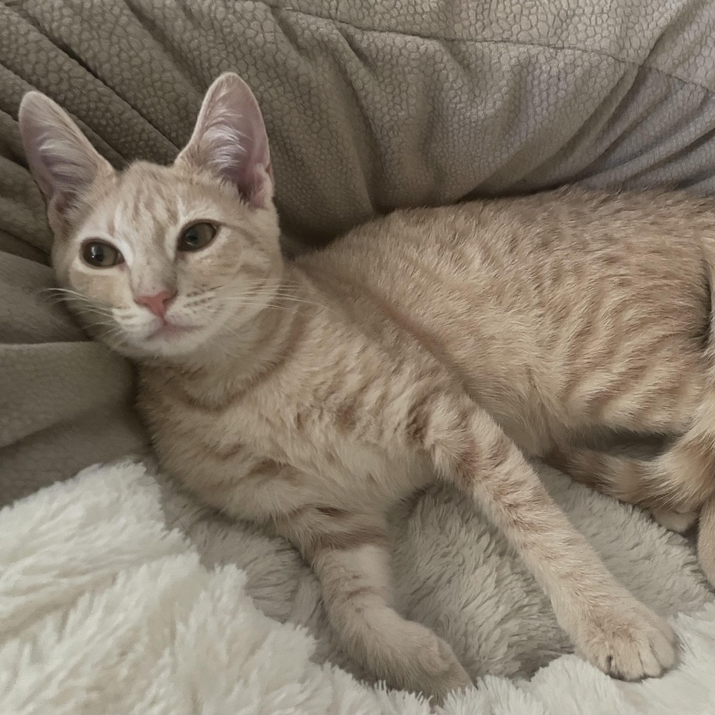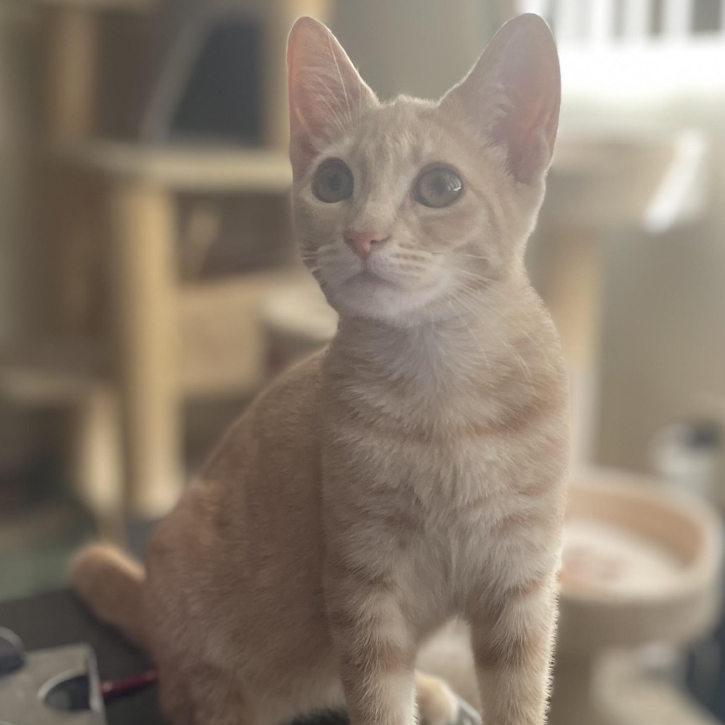 From the streets to the sheets, personified... Princessa is what the community called her when her future foster human found her when doing TnR for P's mama and other ferals on a busy and dangerous street across from a park on a sweltering summer night. So many humans helped feed and begin to socialize this absolute sweetheart orange creamsicle girl but nobody had taken her out of harms way and into the safety of the great indoors. That was all to change when Princessa's heart-melting charm and playful sweetness begged to be taken home. Her sweet meowy affectionate joy and beautiful personality made it clear she was not meant to be living the feral life. Now she's got her full Kitten Rescue vetting, spaying, chipping, deworming, vaccinating and is fully ready to bring her exuberant personality to your family. Total kitten-mode, Princessa LOVES to play with other cats, and any kind of toys, she loves all the benefits of feeling safety and petting inside and snuggling up once she's attached to you. Her spunky kitten perspective is a joy to see and she'll undoubtedly adorn your world with her purry nose. Princessa might need a few days or weeks to fully trust and adjust to her new home, but once she's understanding of you, you will see what an absolute love-bug she is. She would LOVE a home with compassionate humans and at least one other young cat or kitten, or more. Please contact the foster at nibroka@aol.com