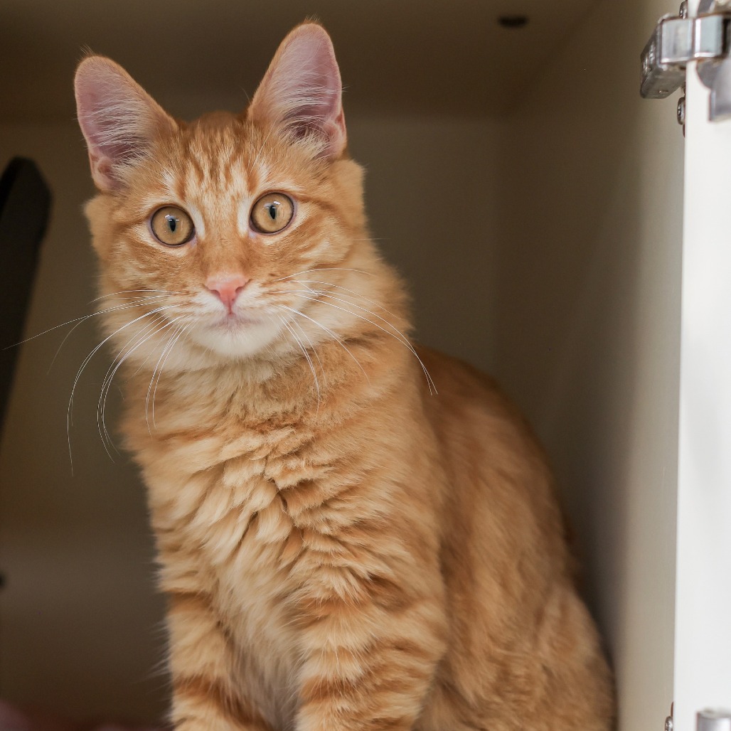 Marshall Mathers is the definition of cozy kitten perfection. This fluffy orange tabby boy has the softest, most huggable coat and the kind of sweet expression that melts you instantly. He’s playful, affectionate, and just a little bit goofy in the best possible way. Marshall loves wrestling with his brothers, chasing feather toys, and climbing to the highest perch he can find. But when playtime winds down, he’s all about snuggles. He happily leans into pets, purrs like a tiny motor, and would love nothing more than to curl up next to you at the end of the day. Marshall must be adopted with one of his brothers — Eminem (KRLA-A-86983) or Slim Shady (KRLA-A-86985) — because these boys are a tight-knit trio who thrive with a built-in best friend. Having a buddy keeps him confident, happy, and entertained. If you’re looking for a fluffy orange sidekick who brings both fun and affection, Marshall Mathers is ready to make your home his forever stage. Please contact the foster at adopt@kittenrescue.org