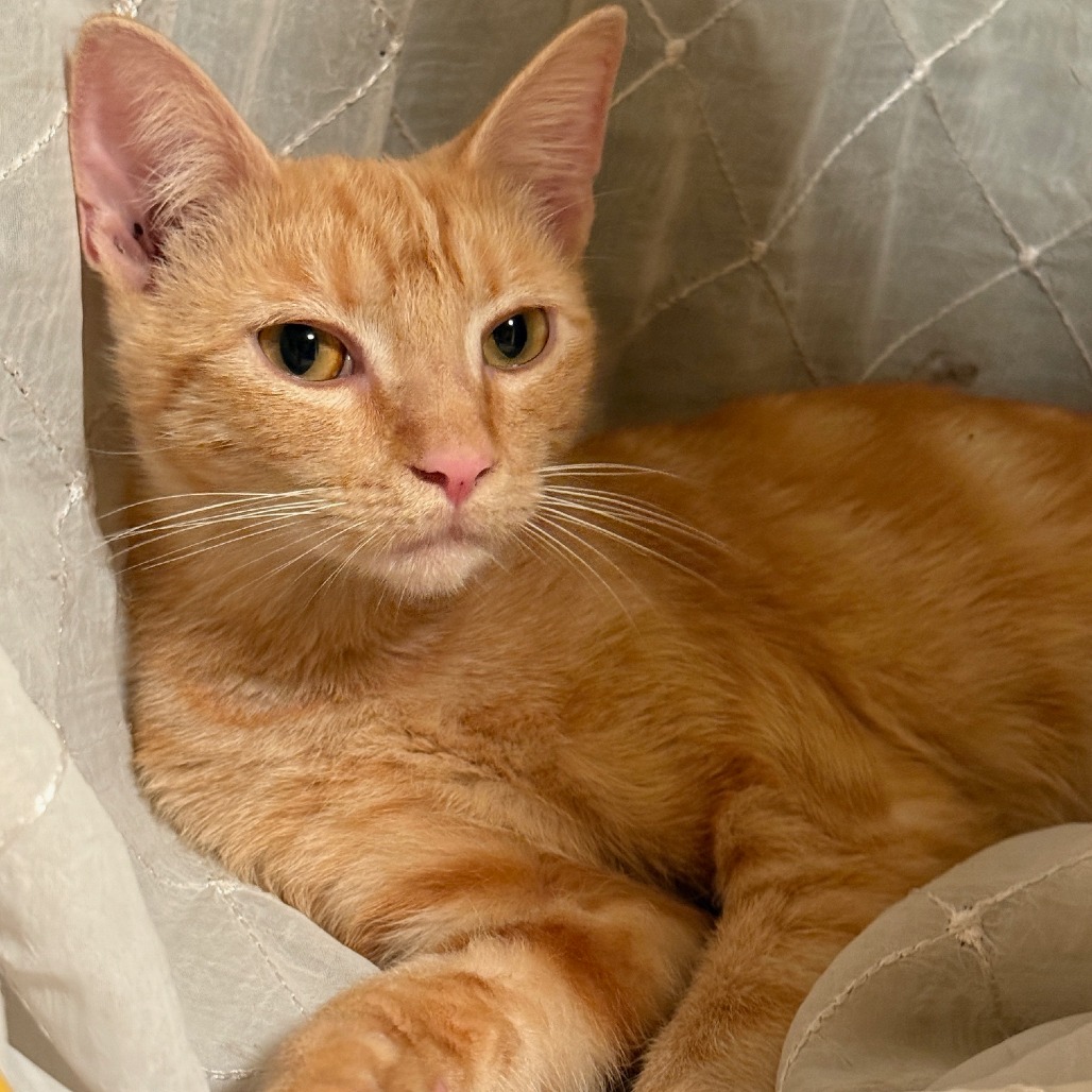 Ginger is a rare female orange tabby, since orange tabbies are usually male. But she's special in so many other ways, too. First of all, she's incredibly talkative! If you like chirpy, meowy, downright conversational kitty cats, Ginger's the girl for you. It's so cute the way she talks! She's extremely playful, too, and can amuse herself for hours on end playing with her mousies and yarn balls. It's so much fun to watch her in action. And if you're available, she loves a game of fetch. She gets along well with other cats, and loves to chase around and play with her kitty friends, but she's also ok being on her own. Ginger is very engaged and affectionate and loves to spend time with her human. If you're at your desk, she'll definitely want to be there with you, keeping you company. She's an all-around good girl with good litter box habits, a good appetite, and the perfect, good natured orange tabby personality -- complete with advances verbal skills. Wouldn't you love for this little girl to join your family? Please contact the foster at susanwinsberg@sbcglobal.net