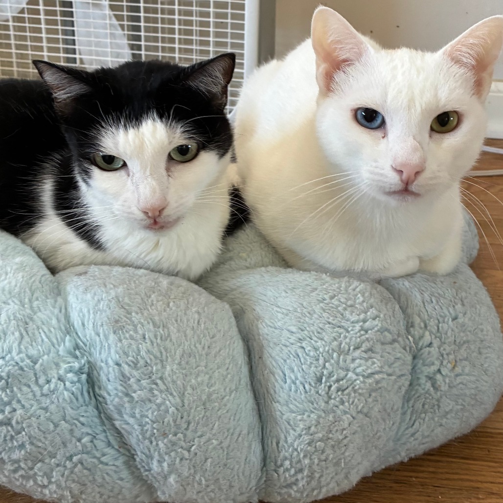 I am a very sweet boy who is shy until I get to know you. I am bonded with my sister, Bianca and would love a quiet home with her. I am on a special diet and need prescription Urinary food. Email:janice@kittenrescue.org