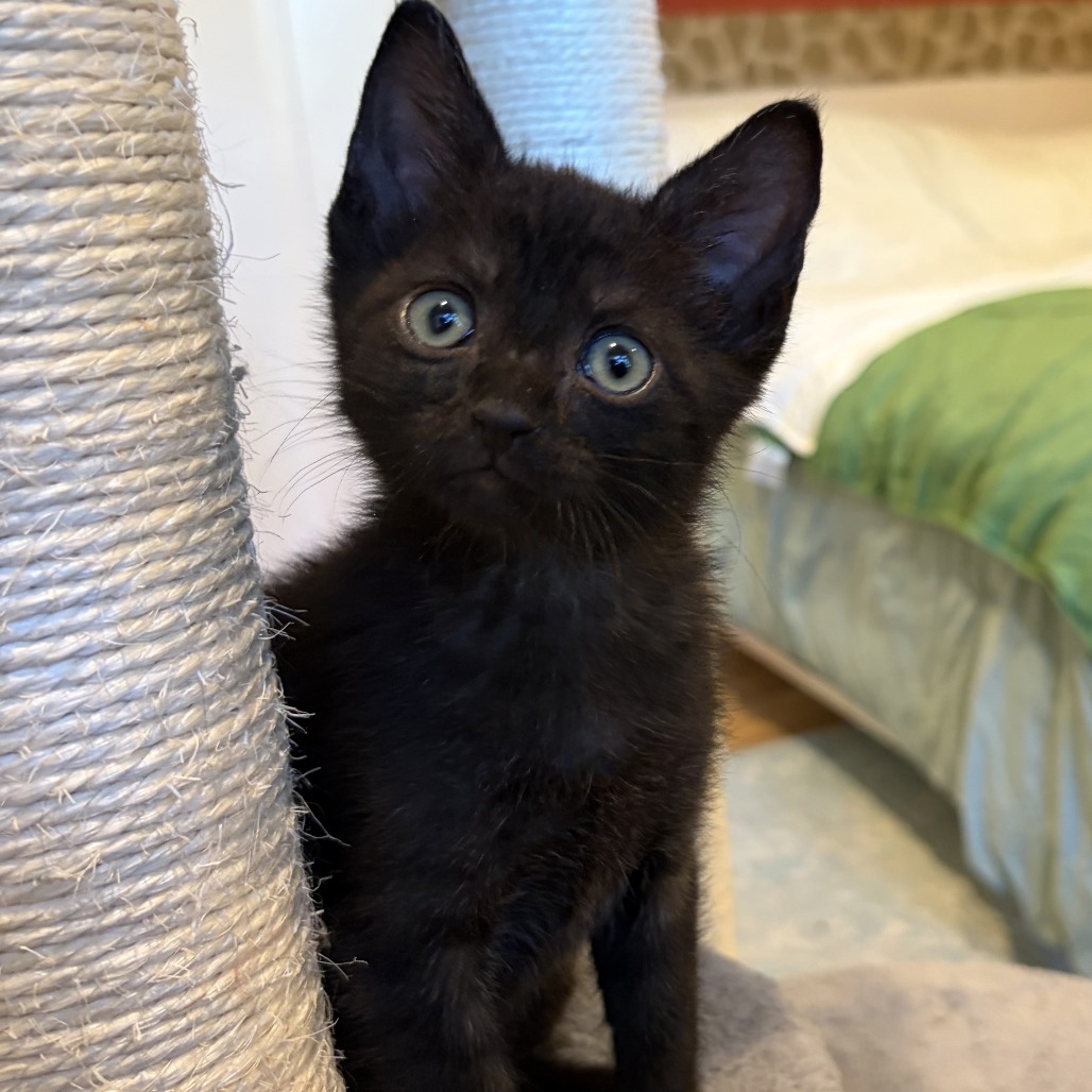 Rue is a gorgeous little black kitten, a sleek mini panther girl with a truly gold star personality. She’s the kind of kitten that will become a true family member. She has a beautiful, big purr and loves human touch and affection. Rue wants to snuggle with people as much as possible and is looking for a home with a playful kitten or young cat that can be her best feline friend. She’s smart, silly, and so ready to bond with her new person or people. Please reach out to Rue’s foster mom at brigdale@gmail.com with any questions.