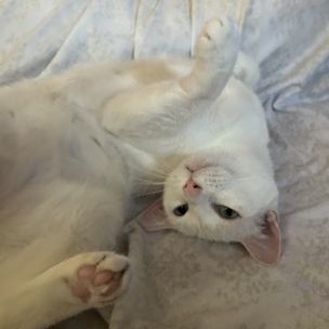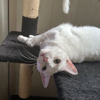 Hello there! My name is Pearl, and I am the friendliest, sweetest kitty ever! Not only am I a beautiful white kitty with some light tan rings on my tail, but I have 1 green eye and 1 blue eye- How about that?! I love people, and I get along great with other cats. I love to purr, play and get lots of pets. I’m still young, so I also like to run and jump! I don’t know where I originally came from, but I ended up being adopted by someone who didn’t take very good care of me; and after moving me around a lot, I ended up with Kitten Rescue and they are taking really good care of me: And helping me find my forever home! I am healthy. Thanks, and Meow! Please contact the foster at runningrenee@netzero.net