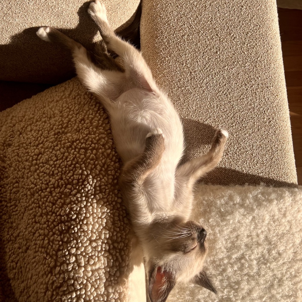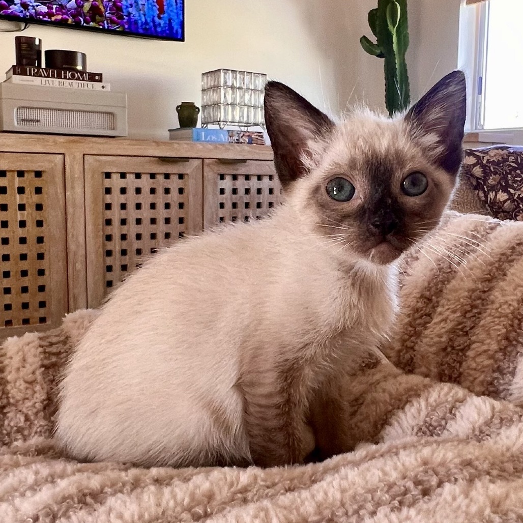 Meet Opal! Opal may be tiny, but she’s got a big personality. She’ll scope out the room for a second, then suddenly take off like she has somewhere very important to be (usually a toy or a blanket she plans to steal). She’s obsessed with feather wands, loves burrowing into anything soft, and has this cute habit of lightly tapping your arm when she wants attention. Once she trusts you, she’s a full-volume purr machine and will happily take over your lap. She’s super social with other cats and really needs a young, playful buddy around — she’s not meant to be the only cat in the house. If you want a sweet, blue-eyed goofball who’s equal parts cuddly and chaotic, Opal’s your girl. Bonded with KRLA-A-87042 Clove, KRLA-A-87043 Bram Please contact the foster at gaskellnagette@gmail.com
