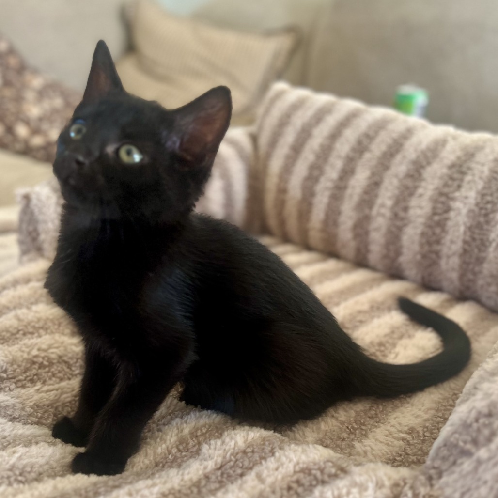 Meet Bram! Bram is a lively, affectionate black Siamese mix with a personality twice his size! This little puffball lives for playtime—chasing toys, tackling his gorgeous Siamese sisters Clove (KRLA-A-87042) and Opal (KRLA-A-87041), and then curling up for snuggles once he’s burned off his kitten zoomies. Confident, curious, and endlessly entertaining, Bram lights up every room he walks into. He’s all heart, all energy, and all about making friends. If you’re looking for a companion with both spunk and sweetness, Bram’s your guy. Please contact the foster at gaskellnagette@gmail.com