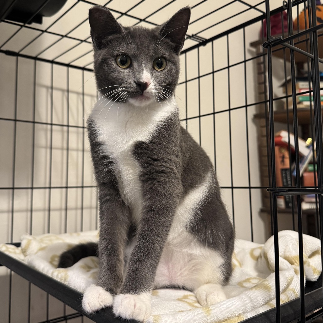 Rescued from an alley in Lincoln Heights, Gillian has blossomed into the sweetest, most easygoing little fluff. She’s a laid-back kitten who loves nothing more than curling up for snuggles—unless there’s a Churu involved, in which case she turns into a very enthusiastic snack connoisseur. When she’s not politely asking for treats, Gillian can usually be found wrestling and playing with her siblings. She’s social, gentle, and has a calm, comforting presence that makes every room feel warmer. Gillian is ready to bring her soft spirit and playful charm to a forever home! Please contact the foster at sterlingpaige93@gmail.com