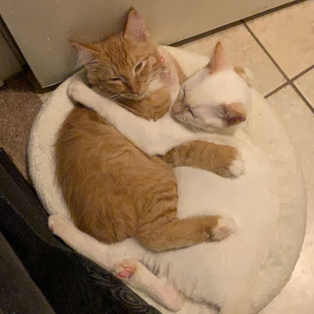 Curious and sweet, Camilo melts your heart when he looks up at you with his “innocent” caramel eyes. He loves to watch what you’re doing and check out anything new, and loves to explore. Camilo always has something to say about everything and he loves attention and treats. With his polydactyl paws, he retrieves his own toys from under things and can even open cabinet doors (though he doesn’t make a habit of it). He and his brother love to play and he often carries toys around to play with them. There’s not a toy that he doesn’t enjoy, but he particularly likes chewing on toys, especially ones that have a crunch to them, so he would love having some toys specific for chewing (and would probably save any fun looking cables you might have lying around). He might be a little shy at first, but he warms up very quickly and takes his role as “chaotic cutie” very seriously. Camilo is a born adventurer, ready to steal your heart with his cuteness. Would do best in a home where he has a playmate, things to keep him occupied (and to chew on and sink his nails in), and someone to cuddle with. He is currently being fostered with his brother, Cloud, KRLA-A-87102). There are no other pets or children in the home. Does not respond to his name, so he’ll be open to a new one if you so decide. Please contact the foster at tareadfirst@gmail.com
