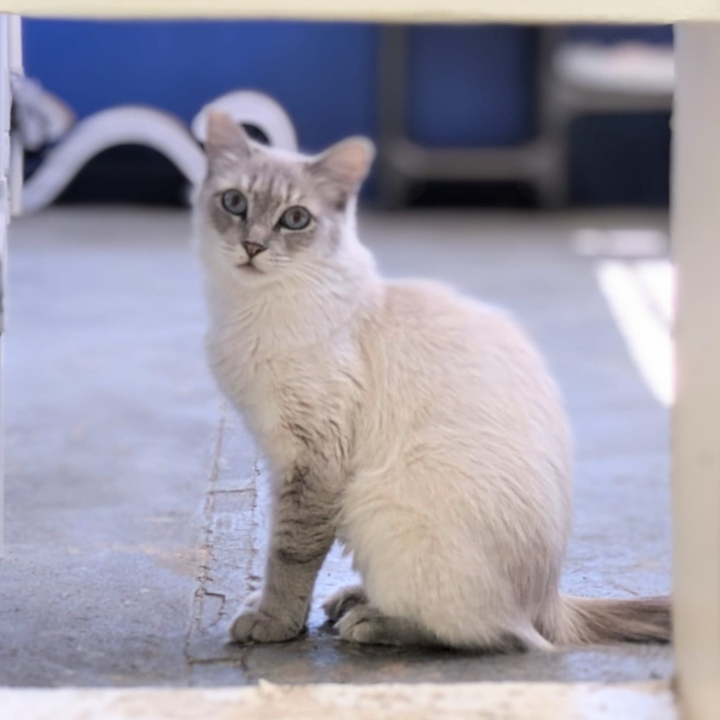 One of the most beautiful cats ever, heart-stopping Harmony is growing more and more confident every day. Her Siamese markings with her medium length coat make her look like a fuzzy teddy bear. She is highly treat-motivated and enjoys curling up in a warm spot to relax, too. With a loving and patient person, this gorgeous girl will have the chance to come out of her shell even more. For more information, contact her foster: orlyahar@gmail.com