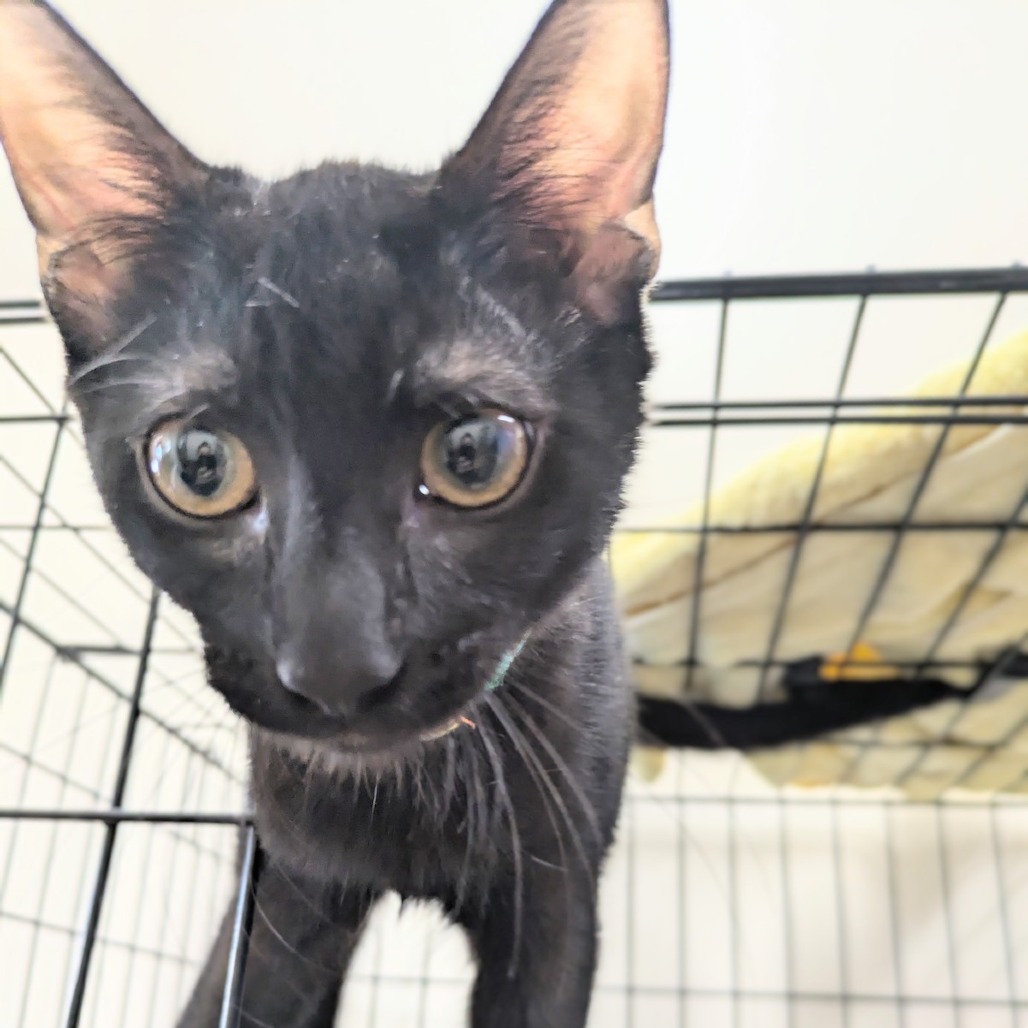 Charismatic Cowbell is a panther kitty who despite her FIV positive status, can keep up with all the other kitties in her room. She is spunky, bright, and loves to cuddle; she also enjoys chasing balls and treats. Cowbell gets along great with both people and her feline roommates, and is excited and curious about what is happening around her. Cowbell will do best with a cat similar in age so that they can grow up together. What an amazing cat! She will make some lucky adopter very happy. For more information, contact her foster: orlyahar@gmail.com
