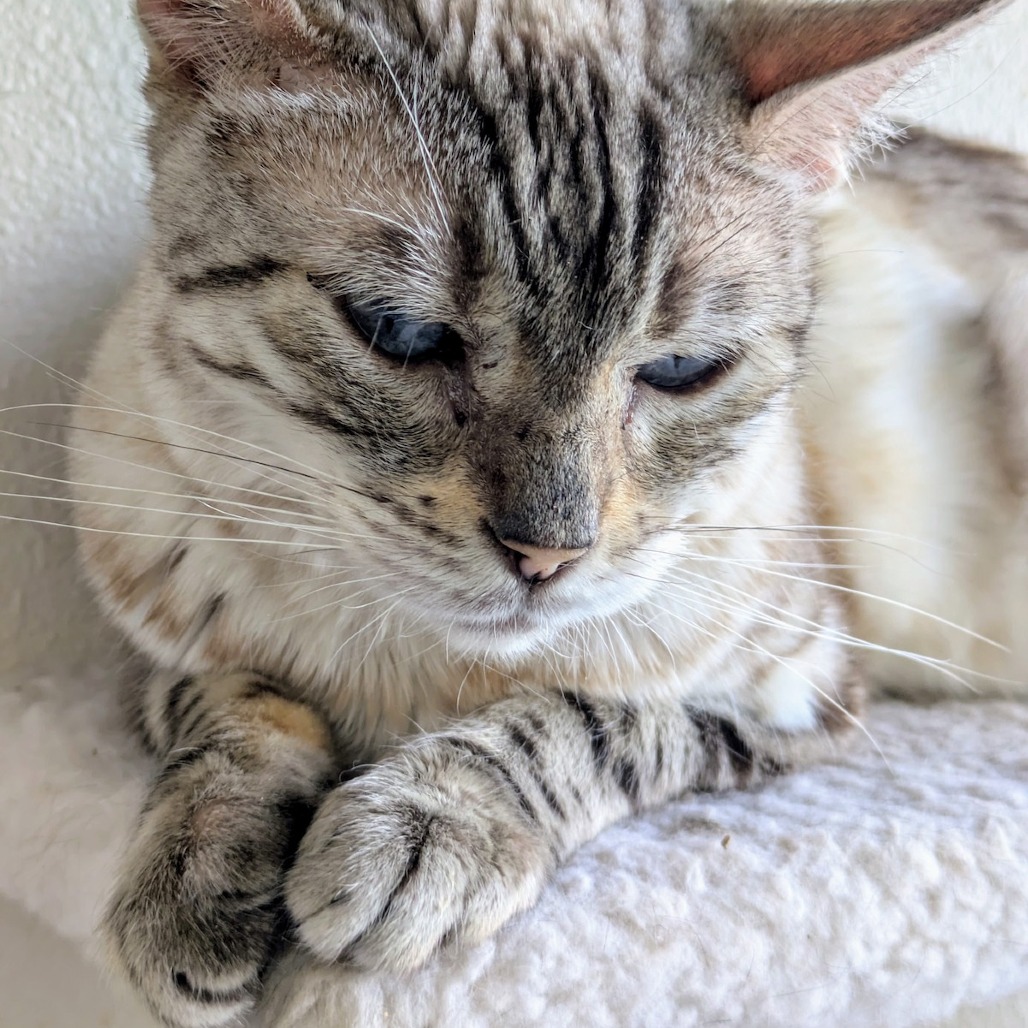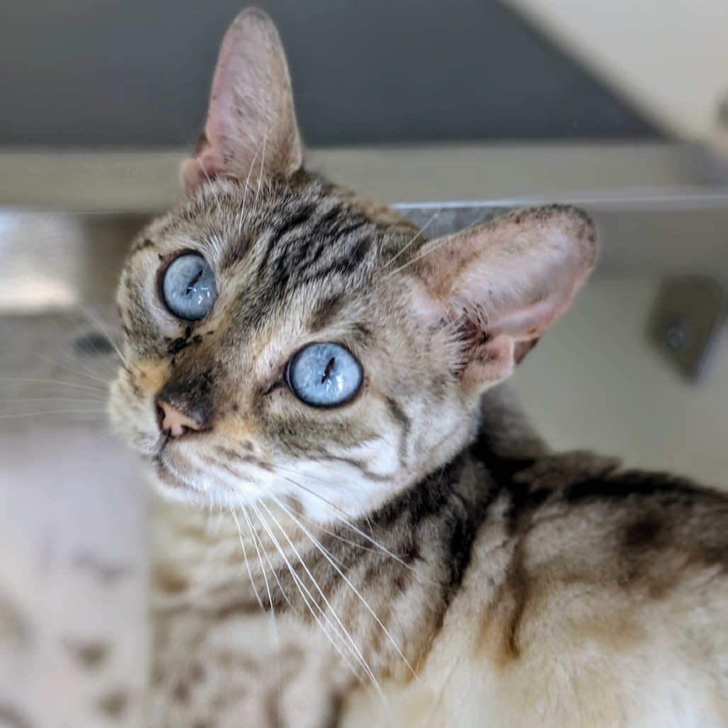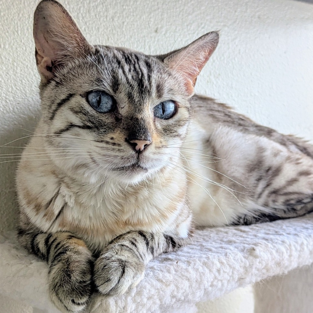 This tiny lilac cutie is a retired show cat, looking to be loved for what’s on the inside and to spend her retirement bringing you joy with her antics and boundless energy. Interestingly, Aspen can bark almost like a dog! Aspen is friendly with people, but she’s not a big cuddler—although she does love head scratches and play. A vocal kitty, she’ll let you know when she wants attention! She will be best as a solo kitty, as she’s not keen on other cats. Aspen will need to continue on a special diet to keep her sensitive tummy in good shape. Contact her foster at orlyahar@gmail.com