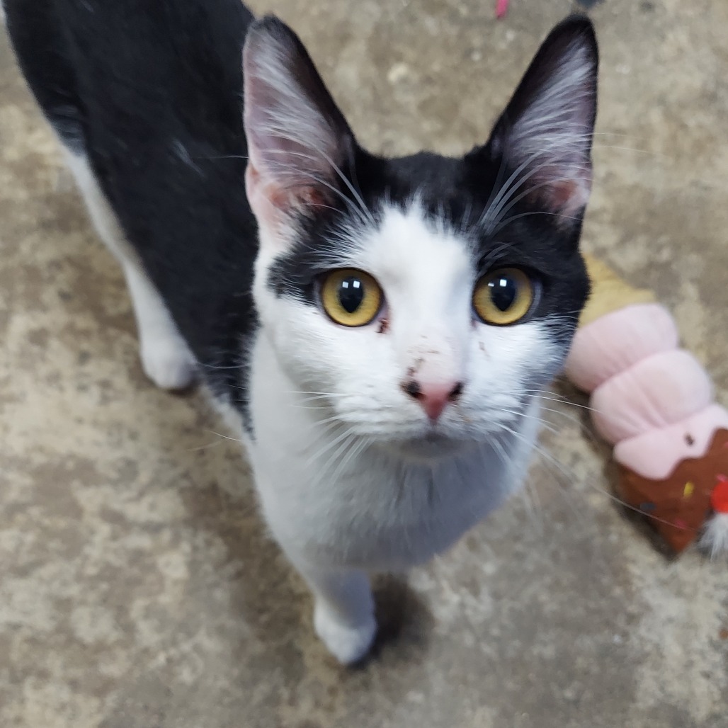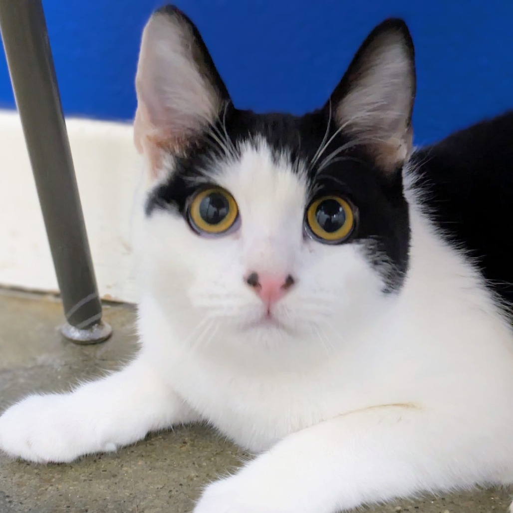 Wheeler is a sweet kitten with huge eyes that seem to look into your soul. He has soft, gorgeous fur and enjoys any pets being handed out. Enchanting in his white coat, with patches of black and golden eyes--although a little shy at first--Wheeler is curious and playful, and would make a great addition to any household. For more information, contact his foster: orlyahar@gmail.com