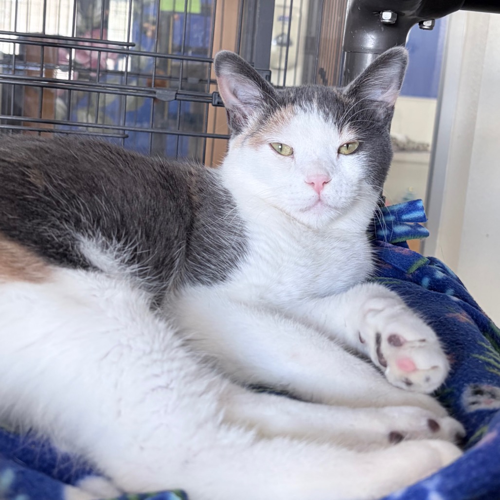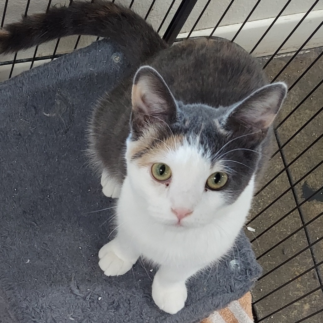 Photogenic Twizzlers and her sister M&M, KRLA-A-87165, the calico kitties, are a bonded pair of cats that came from a large litter known as the Candy Cats. These girls are stunning kitties and get lots of attention because of their fun names and because of how pretty they are. Twizzlers is protective of her sister and gives you the 50-yard stare if you move too fast around them. A bit hesitant at first, Twizzlers is playful and sweet when she warms up to you. She’s energetic and food-motivated and is now learning to socialize with humans and other cats alike. Twizzlers and M&M must be adopted together as a pair. For more information, contact her foster: orlyahar@gmail.com
