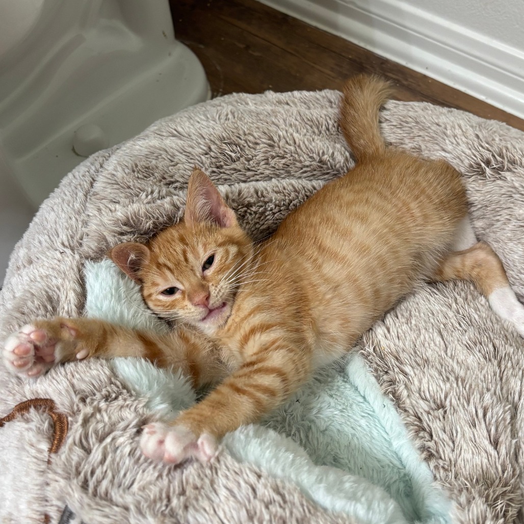 Butterscotch is an adorable orange boy with a lot of personality! He was born in the backyard of a good Samaritan who made sure their mama had a safe place to have her babies. He’s the biggest kitten in his litter and has a lot of confidence, he loves to play and cuddle, and is very sweet. Butterscotch would do best with one of his siblings; Mozart (KRLA-A-87188), Houdini (KRLA-A-87192), or Cookie (KRLA-A-87189), or with another playful cat. Please contact the foster at shaynagmoon@gmail.com