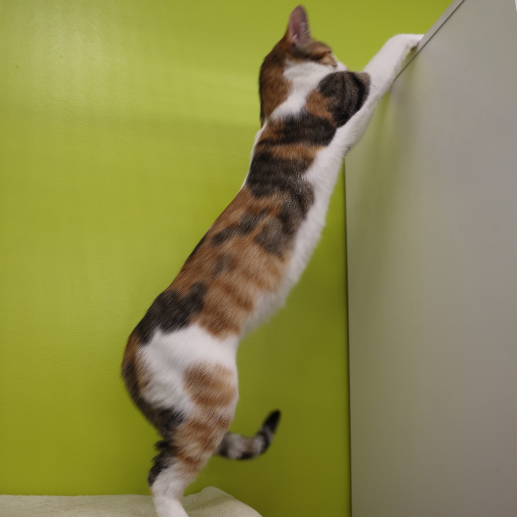 Sofia is an adorable short-haired calico female young adult. Very sweet and affectionate, Sofia is a purr bug when being petted and always appreciates a good belly rub. She is super playful and loves to carry soft toys in her mouth. Since Sofia spooks easily, she tends to lean on her foster brother Gus (KRLA-A-86377) for confidence, so it would be great if they could be adopted together. Sofia and Gus are currently guests at Petco located at 845 S. Arroyo Parkway in Pasadena where they can be visited during store hours. Please consider making room in your heart and home for Sofia and/or Gus! Please contact her foster mom at andrea91020@sbcglobal.net.