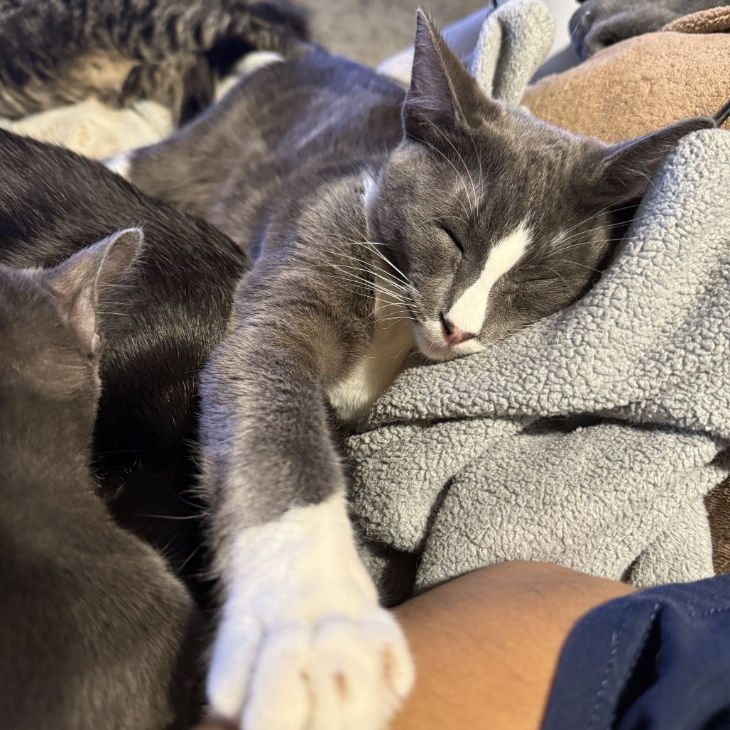 Meet Rocco, one of the most polite and loving kittens I’ve ever fostered. The definition of a gentleman. He just wants to be near you and sit on your lap, soaking up all the love. Rocco can be a little shy at first, but once he feels comfortable, he’ll love you for life. He’s incredibly gentle and has such a kind little spirit. His favorite pastimes are eating, meowing for food, playing with stringy toys that make noise, and cuddling. Rocco likes to give the cutest little hello with the squeakiest meow you may have ever heard. He truly has so much love to give and just wants to be someone’s loyal, cozy companion. Rocco is great with other cats and would do best in a home with other feline friends. He could also do well as a solo cat. He grew up with three siblings and has also spent time with my resident cats, so he's used to having company. He's very bonded with his littermates, so if you're thinking about adopting more than one kitten, this little crew would be perfect together. His siblings’ KR IDs are: KRLA-A-87200 Gigi KRLA-A-87201 Bear KRLA-A-87202 Fifi Please contact the foster at 13sheilag@gmail.com